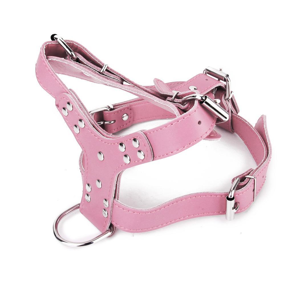 PU Leather Adjustable Chest Strap Dog Puppy Harness Safety Belt Pet Supplies Pink