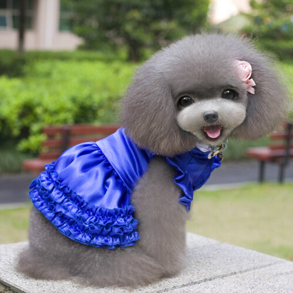Beautiful dog/cat dress gives pet a bright, breezy, and ultra fashionable look for warm weather outings. It is super sweet dog/cat dress with multilayermesh. This pet dress is perfect for parties or everyday strolls.