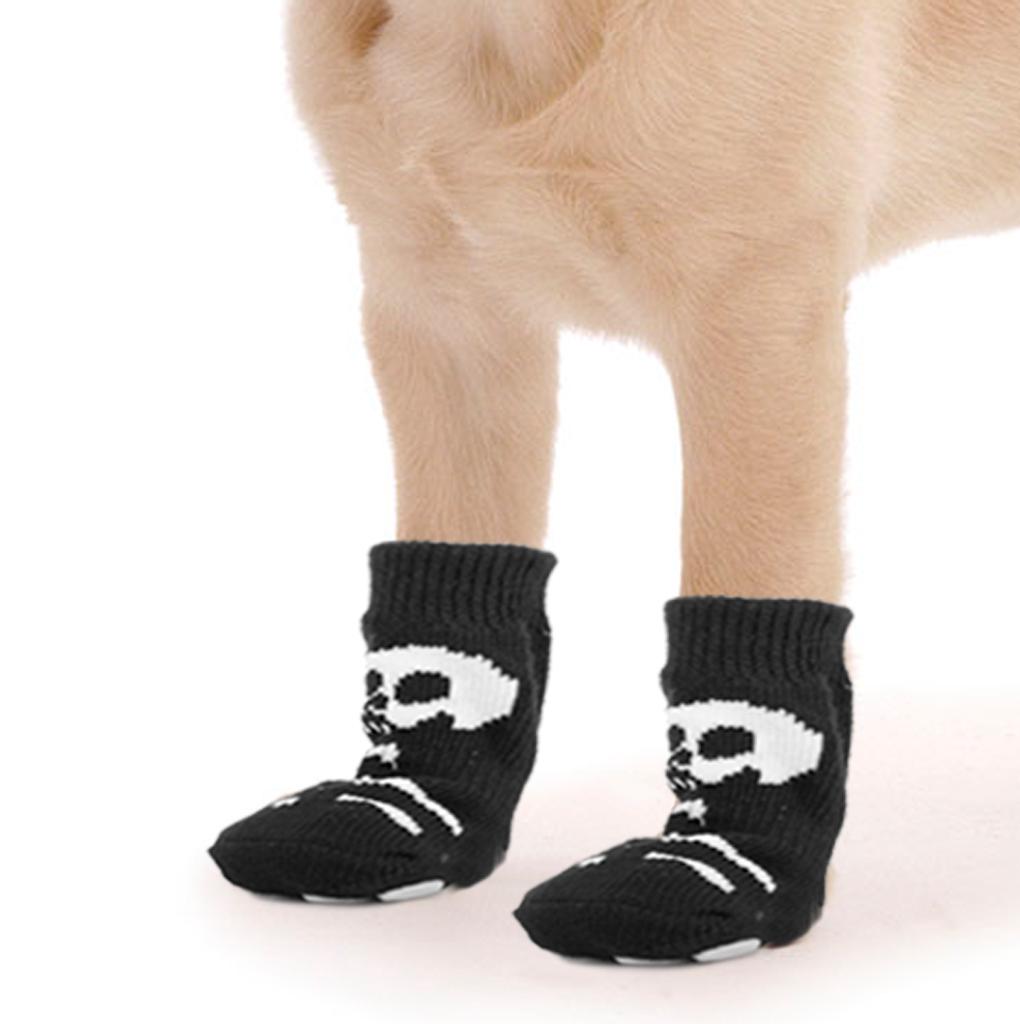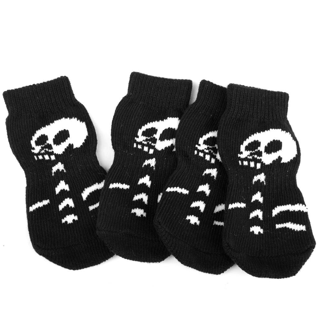 Skid Free Halloween Human Skeleton Pattern Cute Paw Prints Warm Dog Socks Pet Supplies Black + White XL PACK OF 4PCS