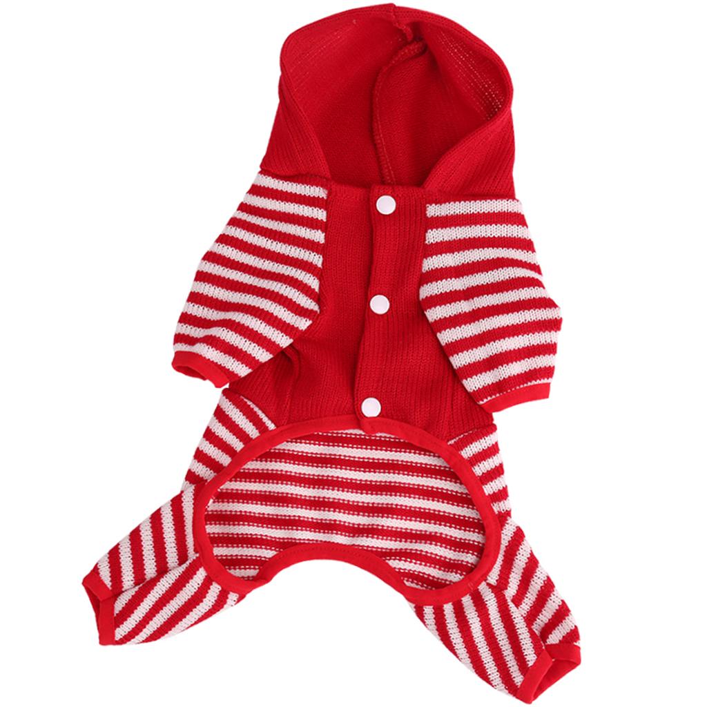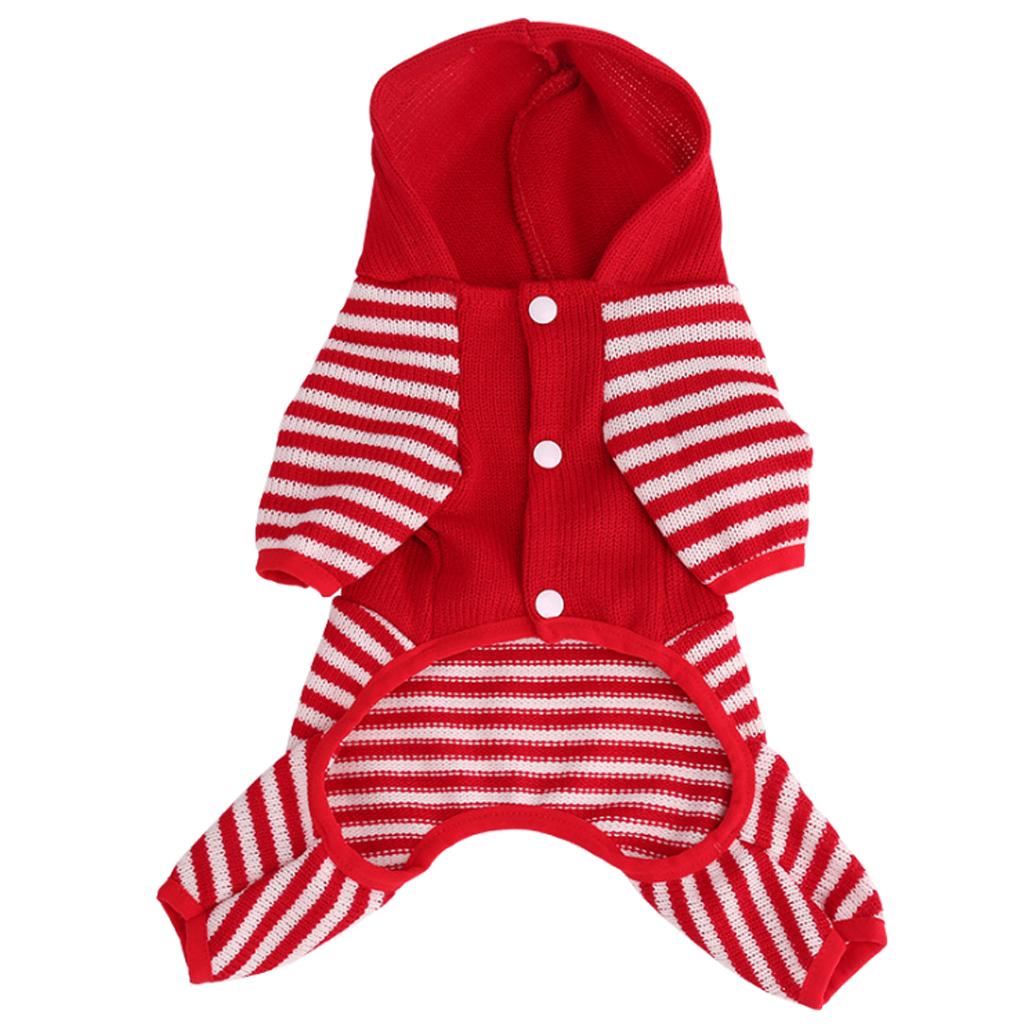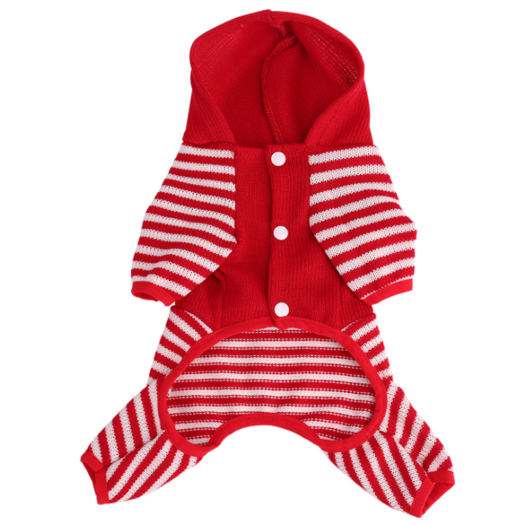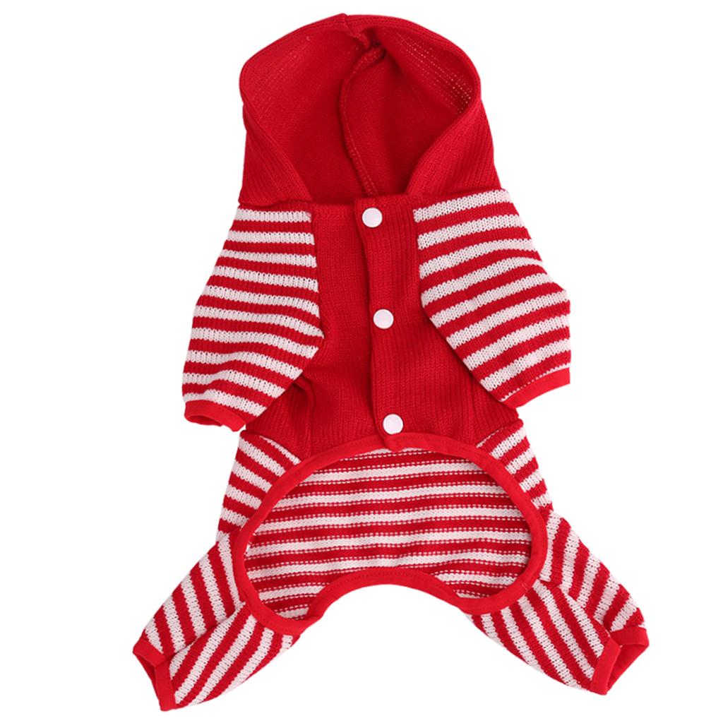 Small Pet Dog Striped Knitwear Puppy Dog Jumpsuit Coat Cosy Clothes Red M