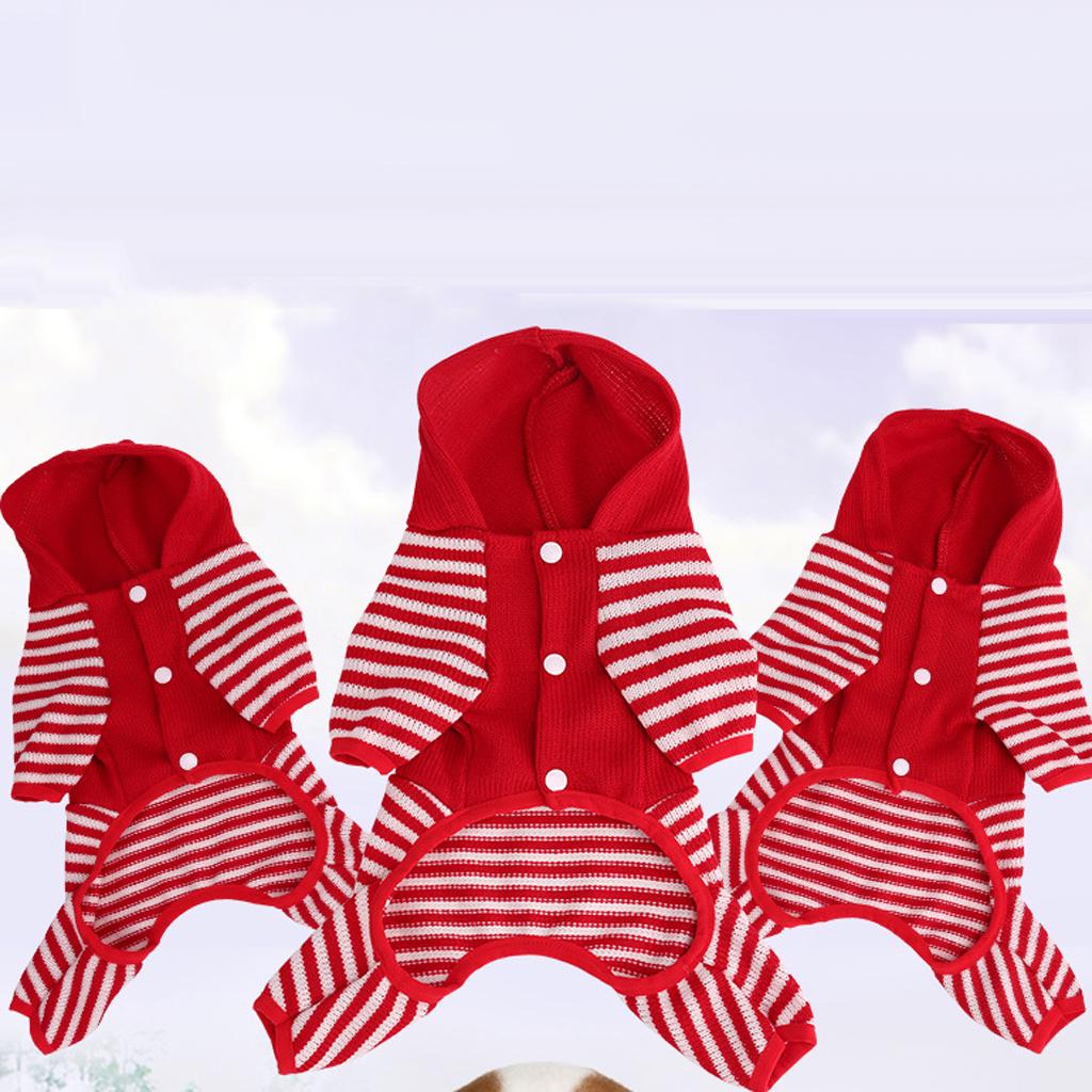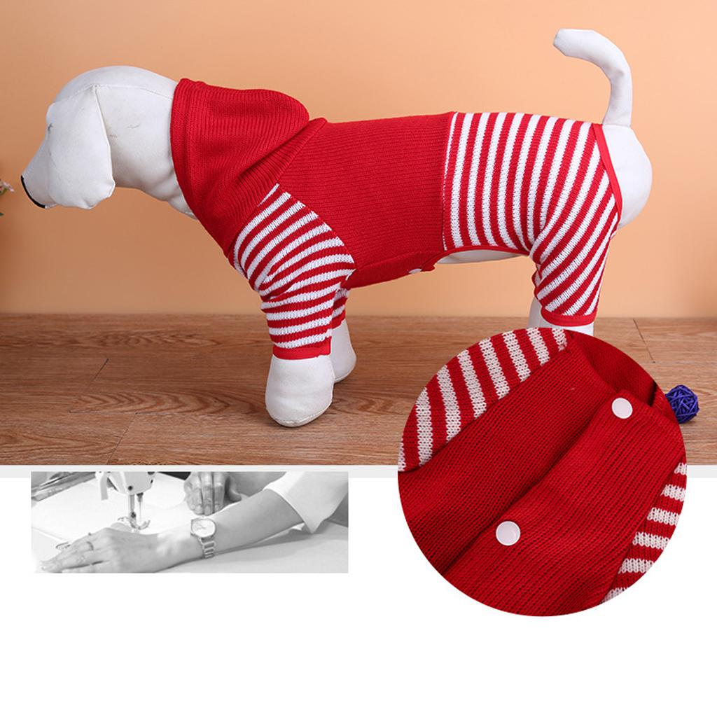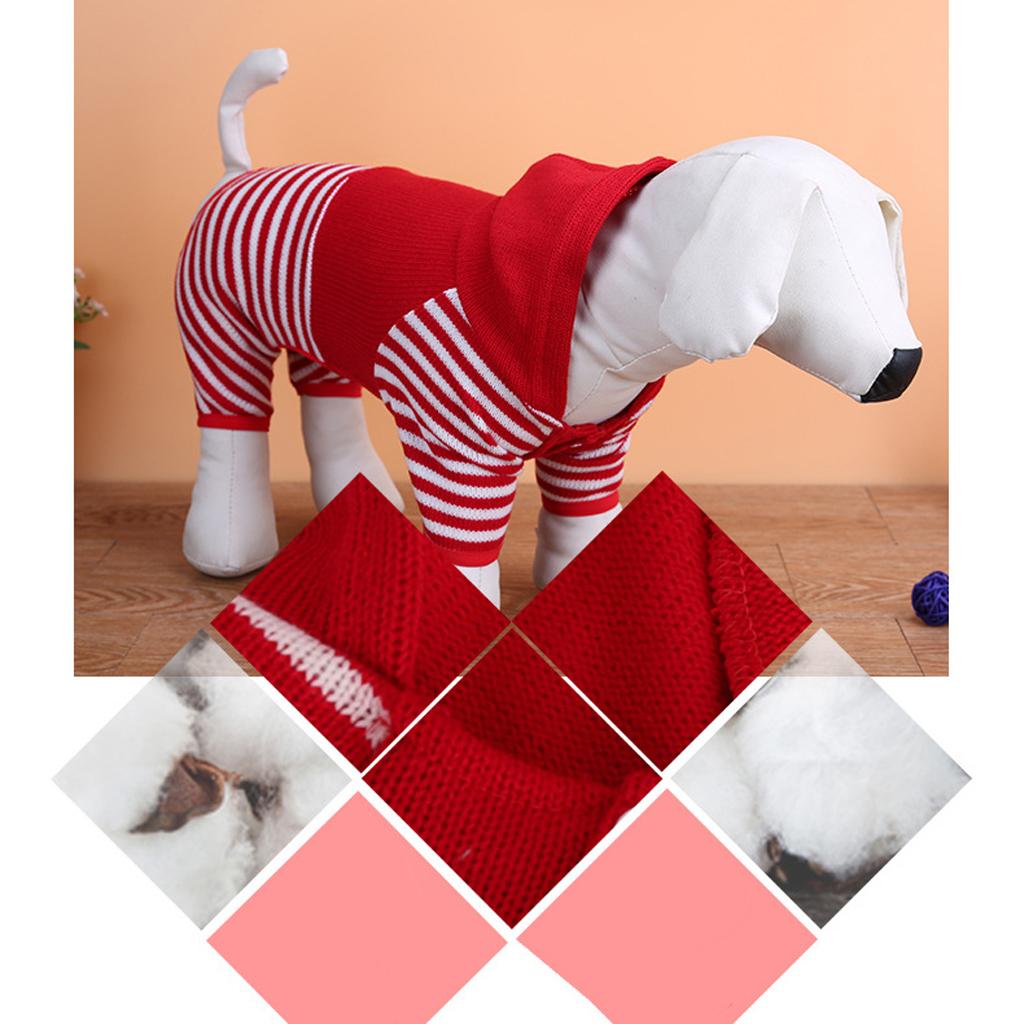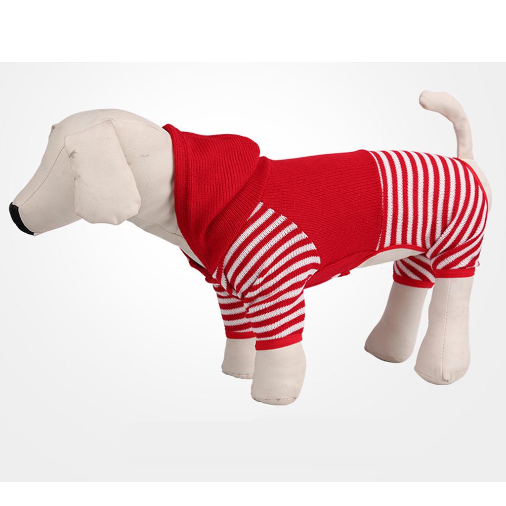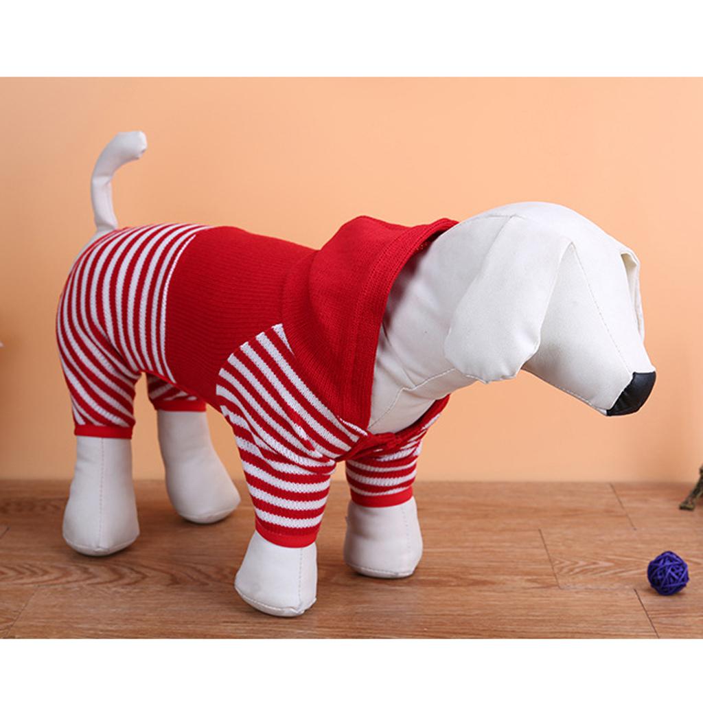 Small Pet Dog Striped Knitwear Puppy Dog Jumpsuit Coat Cosy Clothes Red M