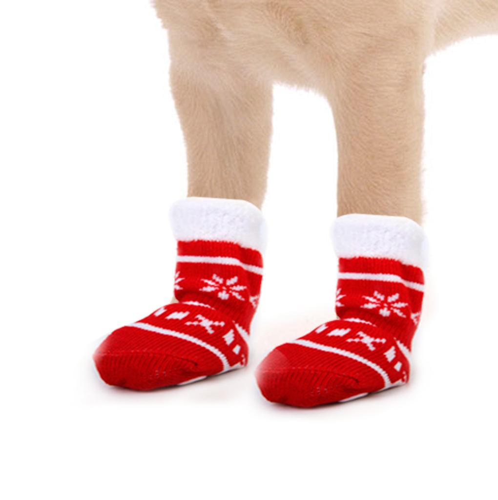 Snowflake Pet Dog Puppy Cat Shoes Slippers Non-Slip Socks with Paw Prints Size M