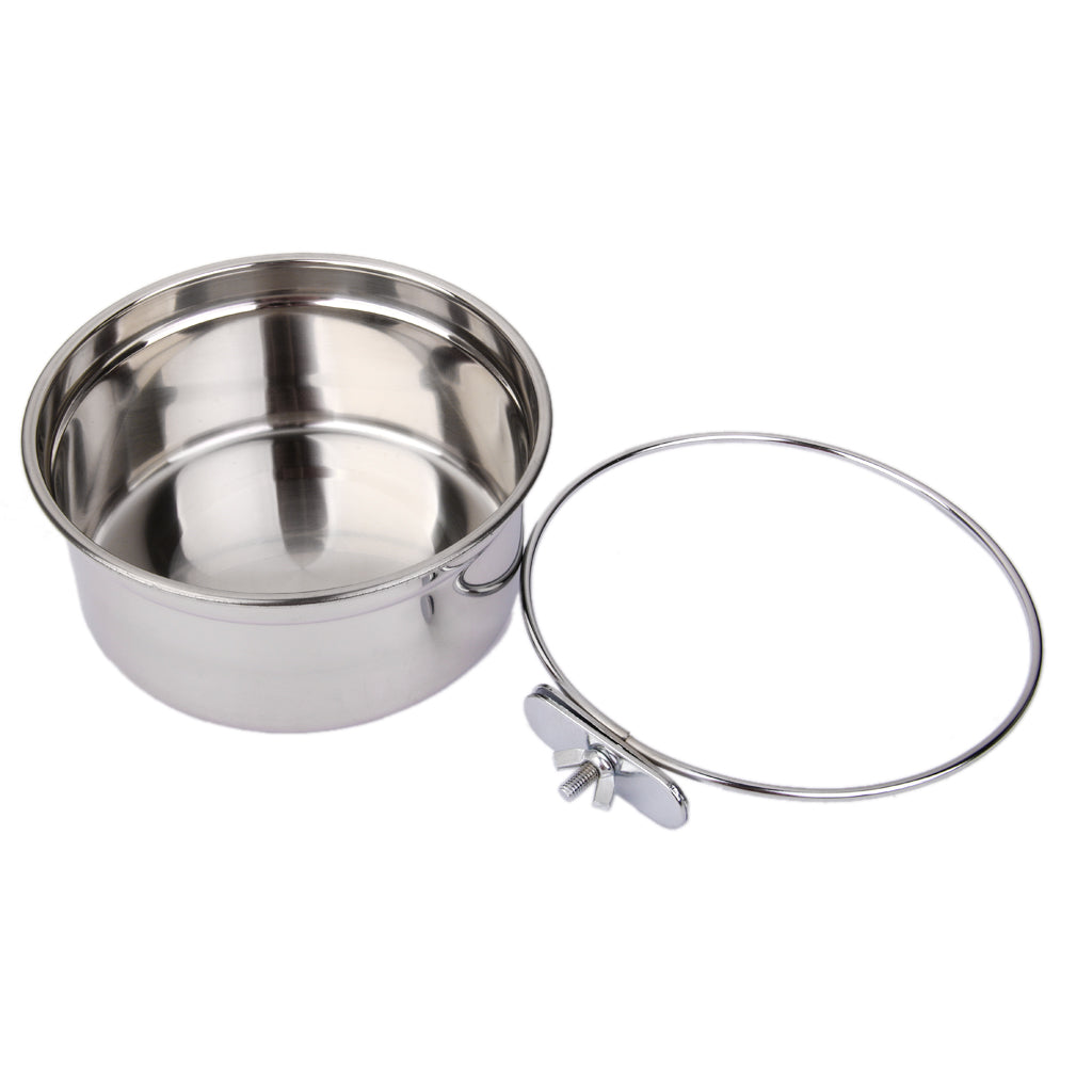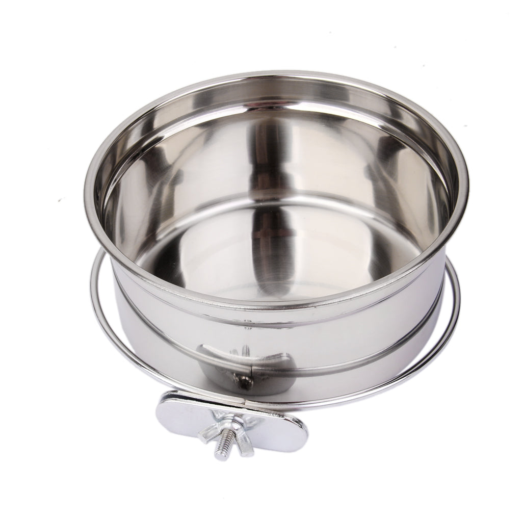 Stainless Steel Cage Clamp Bolt Cup Bird Cat Dog Food Water Hanging Bowl L