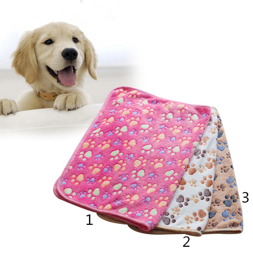 Warm Red Cartoon Paw Print Cushion for Puppy Fleece Soft Blanket Bed Mat--L