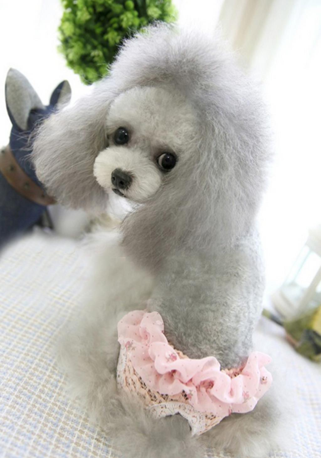 Waterproof Comfortable Pink Drape Pierced Design Floral Chiffon White Lace Dog Physical Pant Pet Supplies Pink L