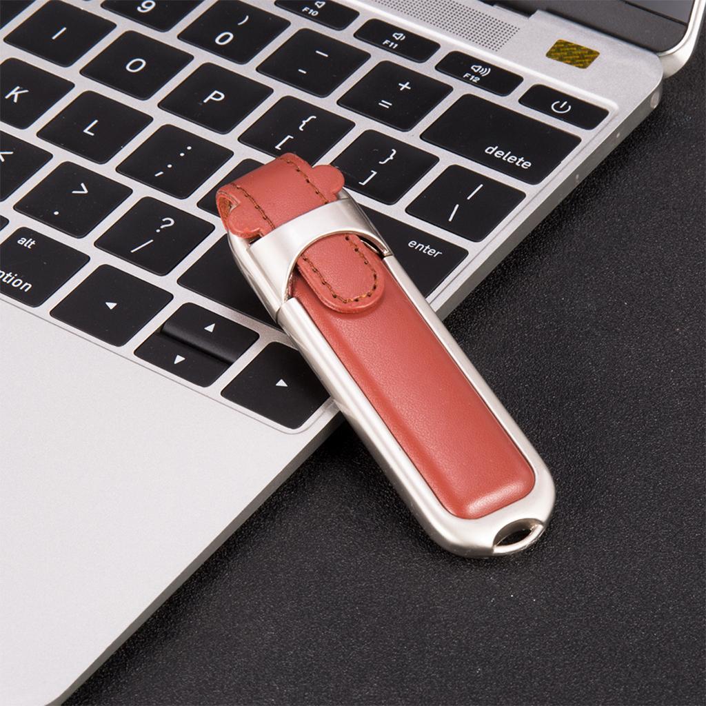 Metal and PU Leather USB 2.0 Flash Memory Drive Stick Pen Thumb U Disk For Data Storages 16GB Brown