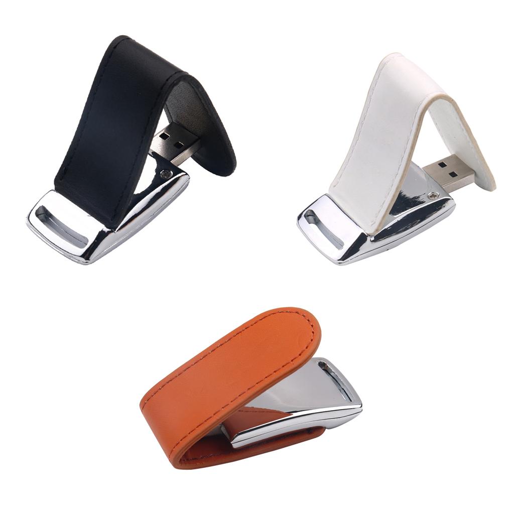 PU Leather Clamshell Flash Drive U-Pan Disk Memory Stick USB 2.0 for PC Laptop Black 64GB