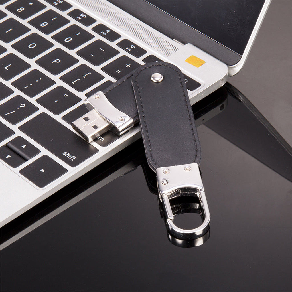 Metal Hook Lock Keyring Buckle and PU Leather Protector Case High-Speed USB 2.0 Flash Drives Rotating Memory Stick Storage U Disk Swivel Pen Thumb Drives.