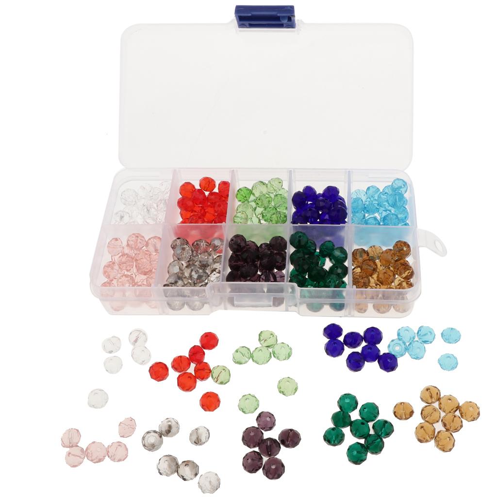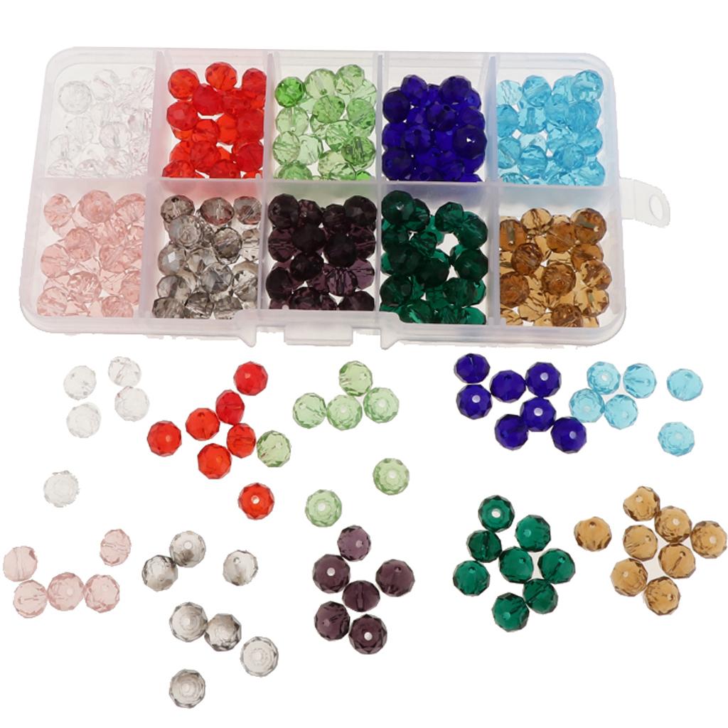 300 Pieces Mixed Colors Crystal Glass Rondelle Faceted Loose Spacer Beads With Container Box