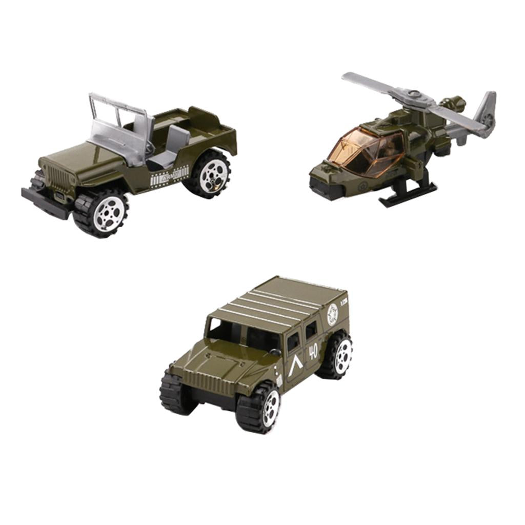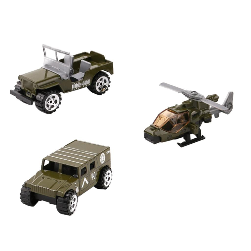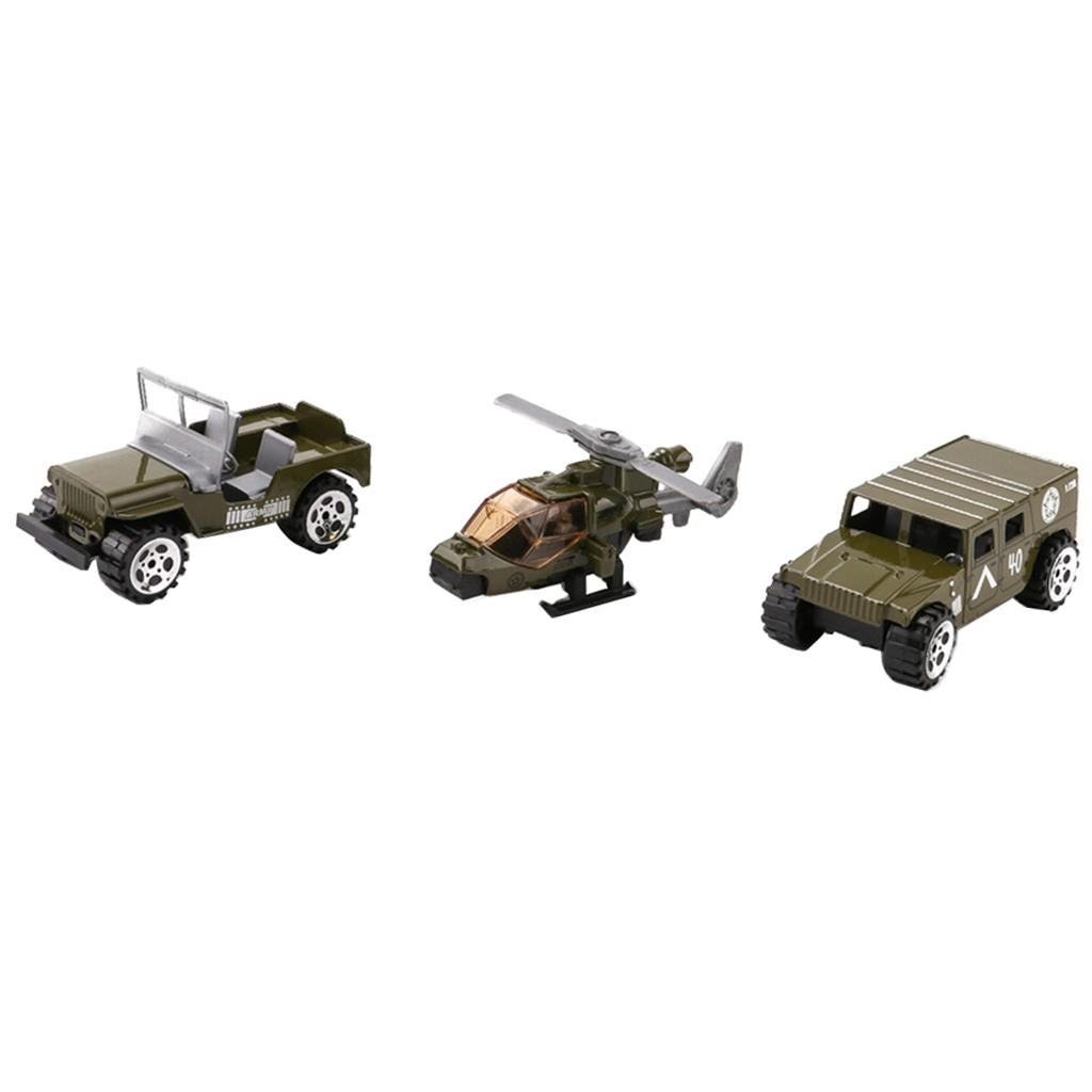 Set of 3 Pieces 1:64 Alloy Jeep Car, Battefield Car & Helicopter Set For Military Model Playset Toy Soldier Army Men Accessories