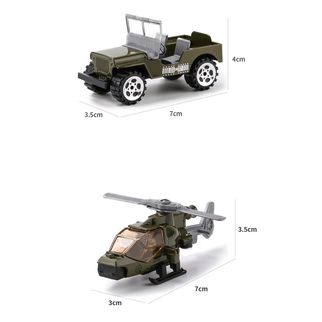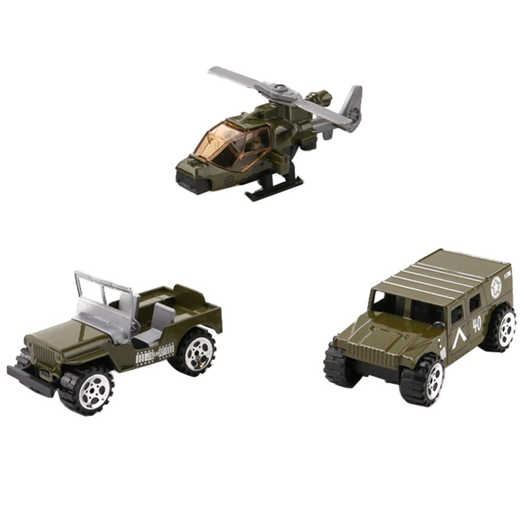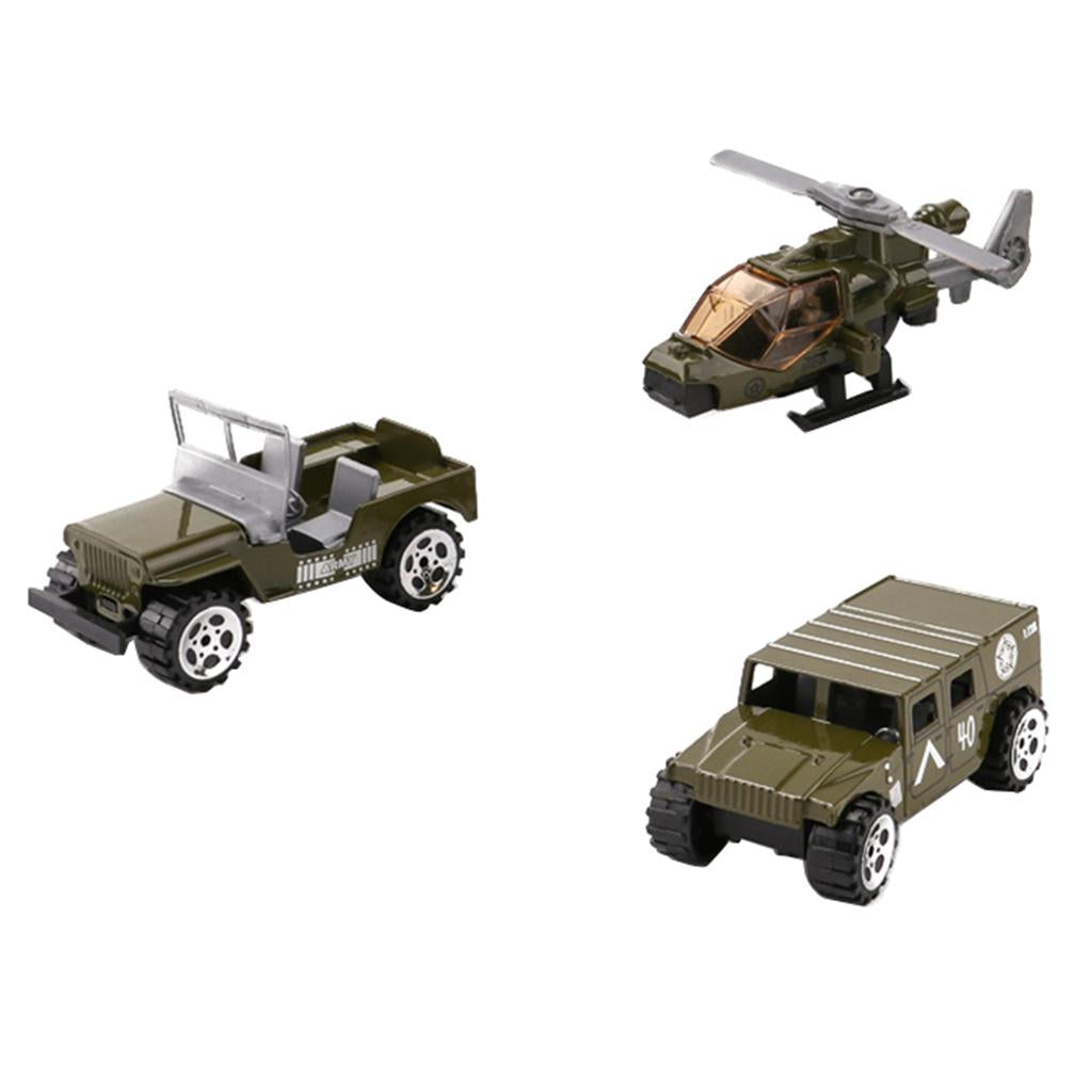 Set of 3 Pieces 1:64 Alloy Jeep Car, Battefield Car & Helicopter Set For Military Model Playset Toy Soldier Army Men Accessories