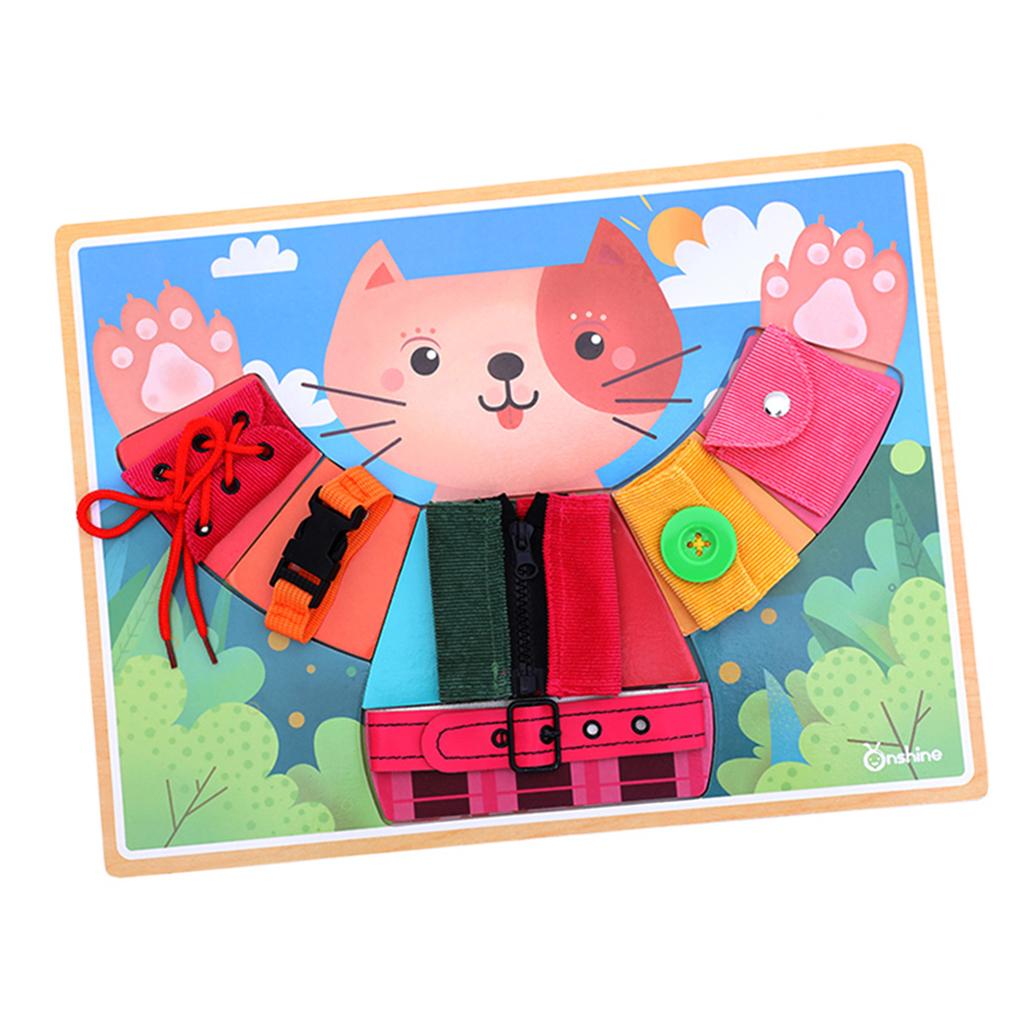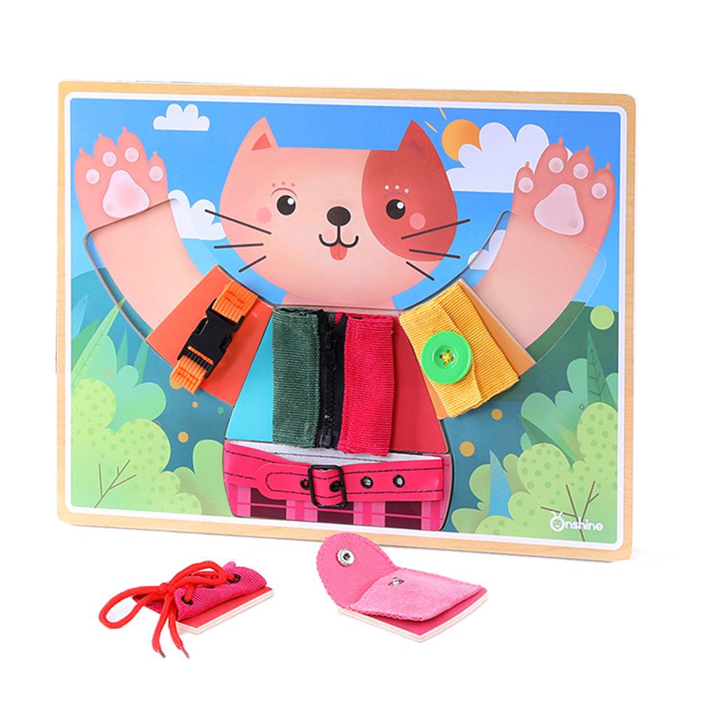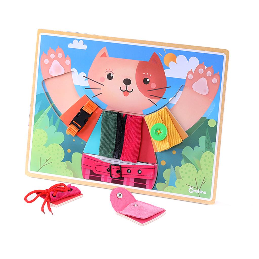 Buckle (belt and seat belt), button, lace, snap, tie and zip puzzle game, training baby independent dressing skills