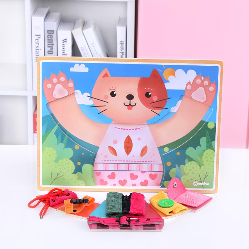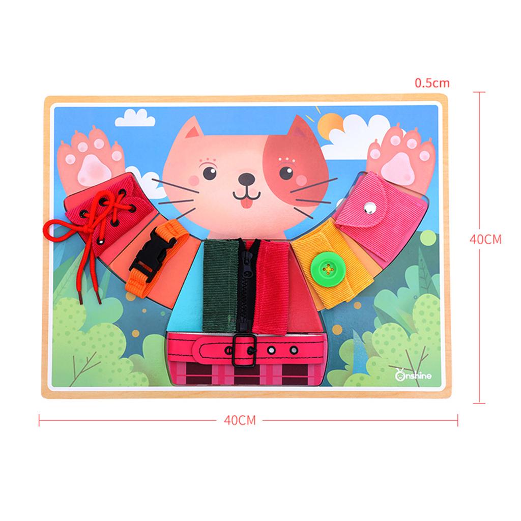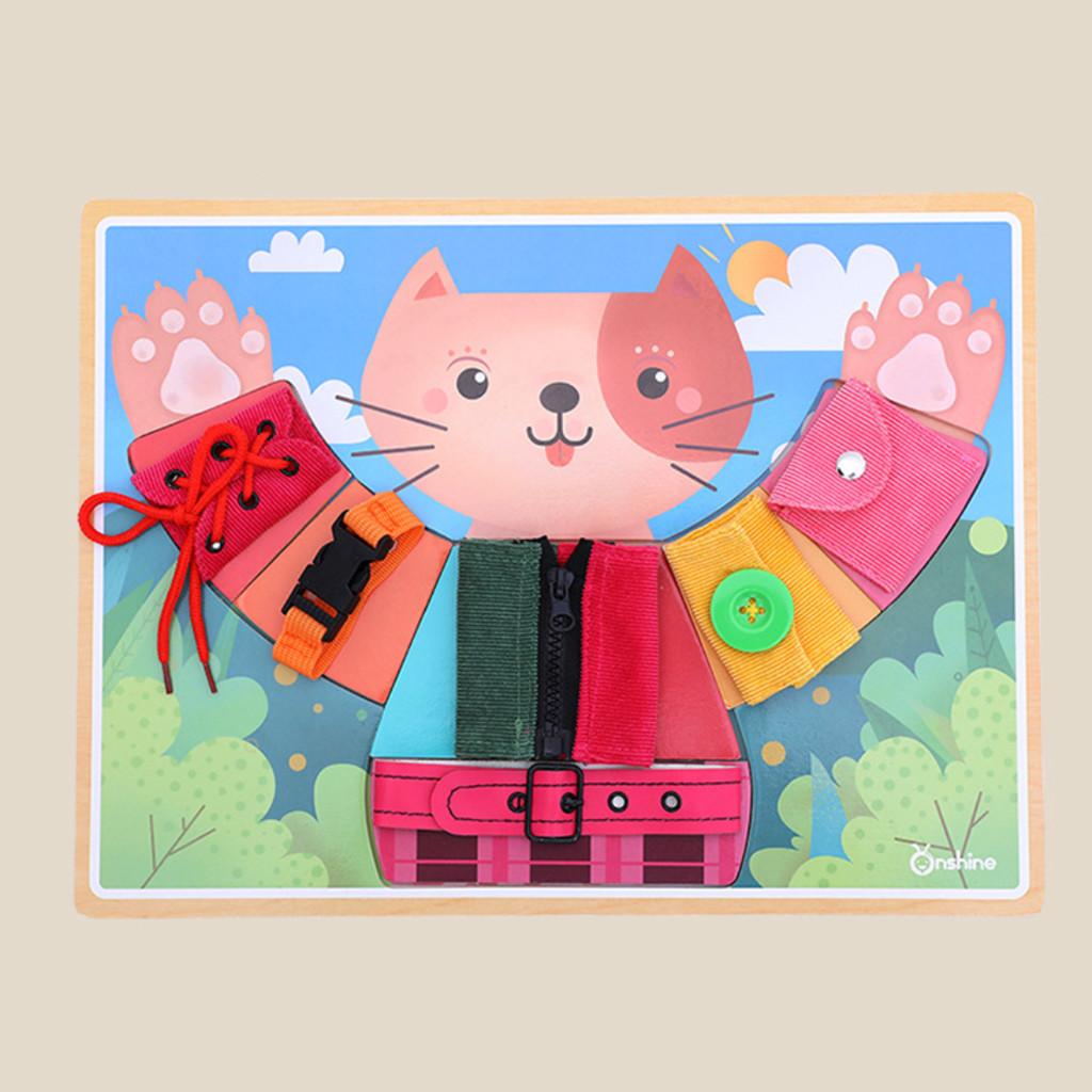Buckle (belt and seat belt), button, lace, snap, tie and zip puzzle game, training baby independent dressing skills
