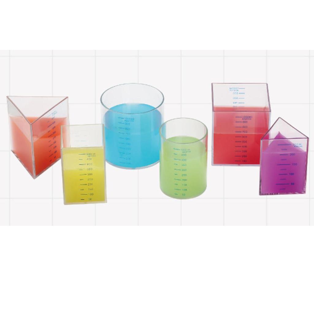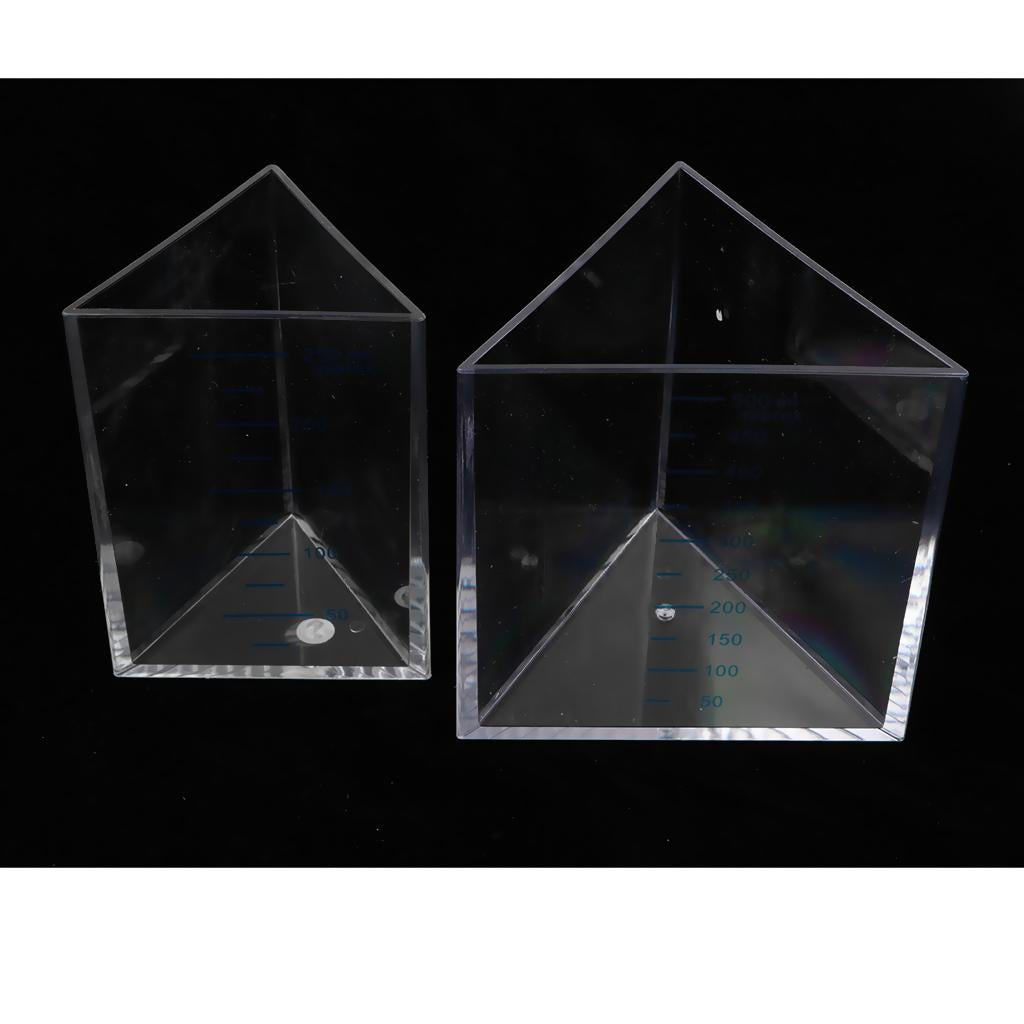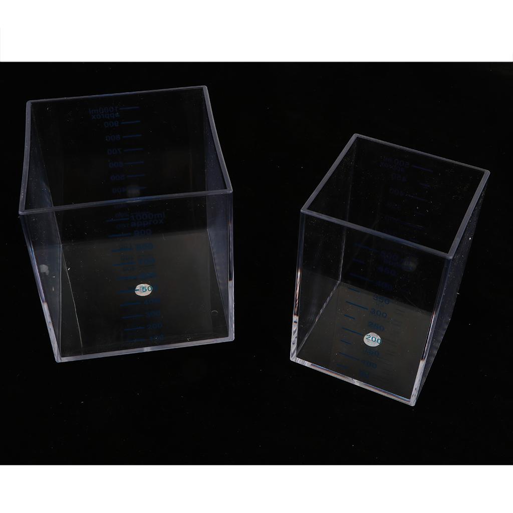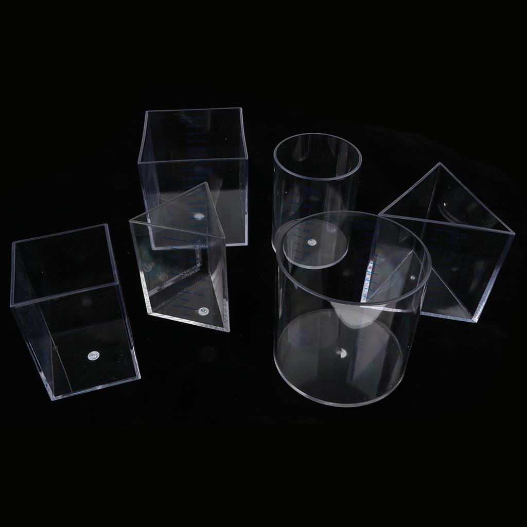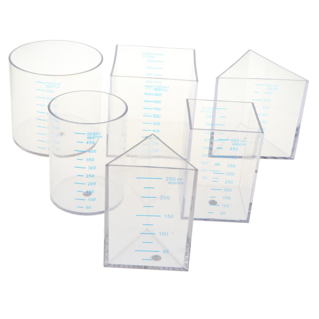 Includes 2 pcs triangle prism cup: 500ml & 250ml; 2pcs cuboid cups: 1000ml & 500ml; and 2 pcs cylinder cups: 1000ml & 500ml.