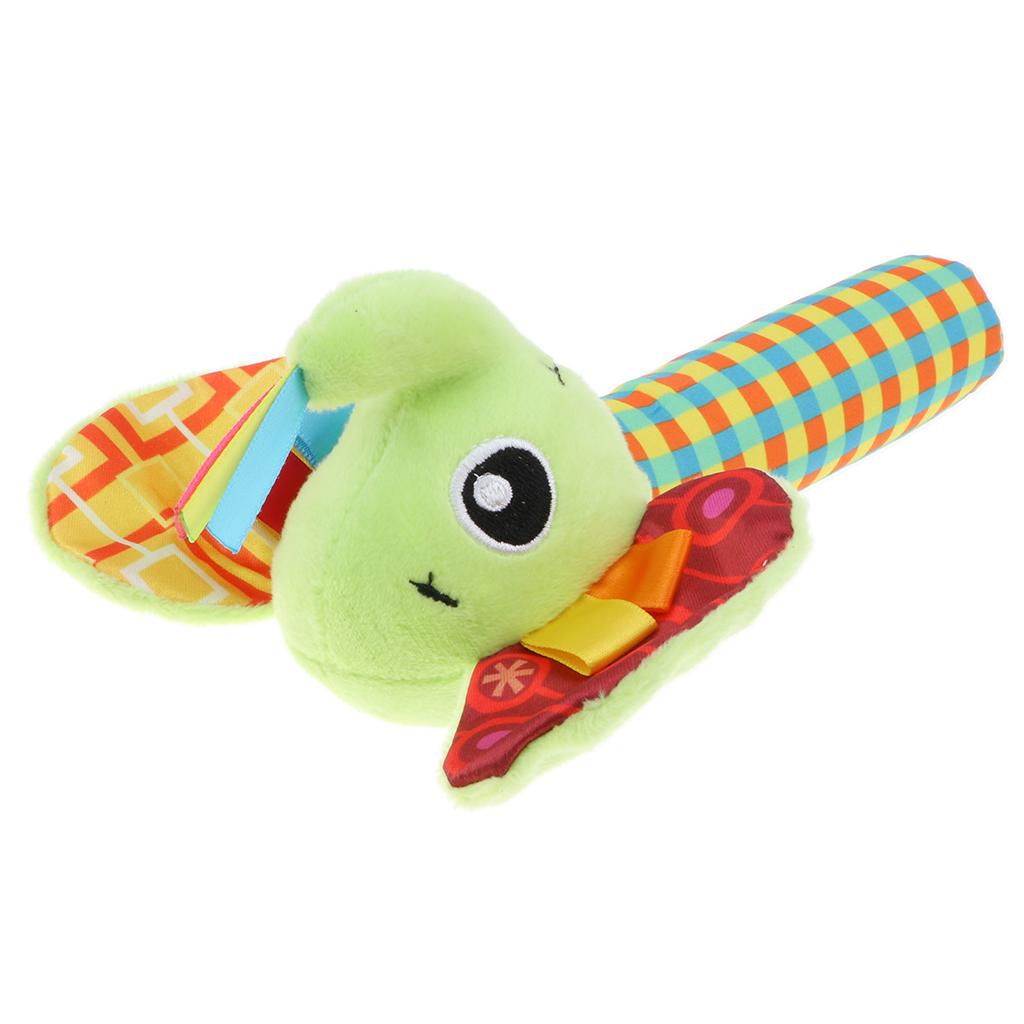 Cartoon animal soft plush hand rattle squeaker sticks, developmental toy for baby infant and toddler
