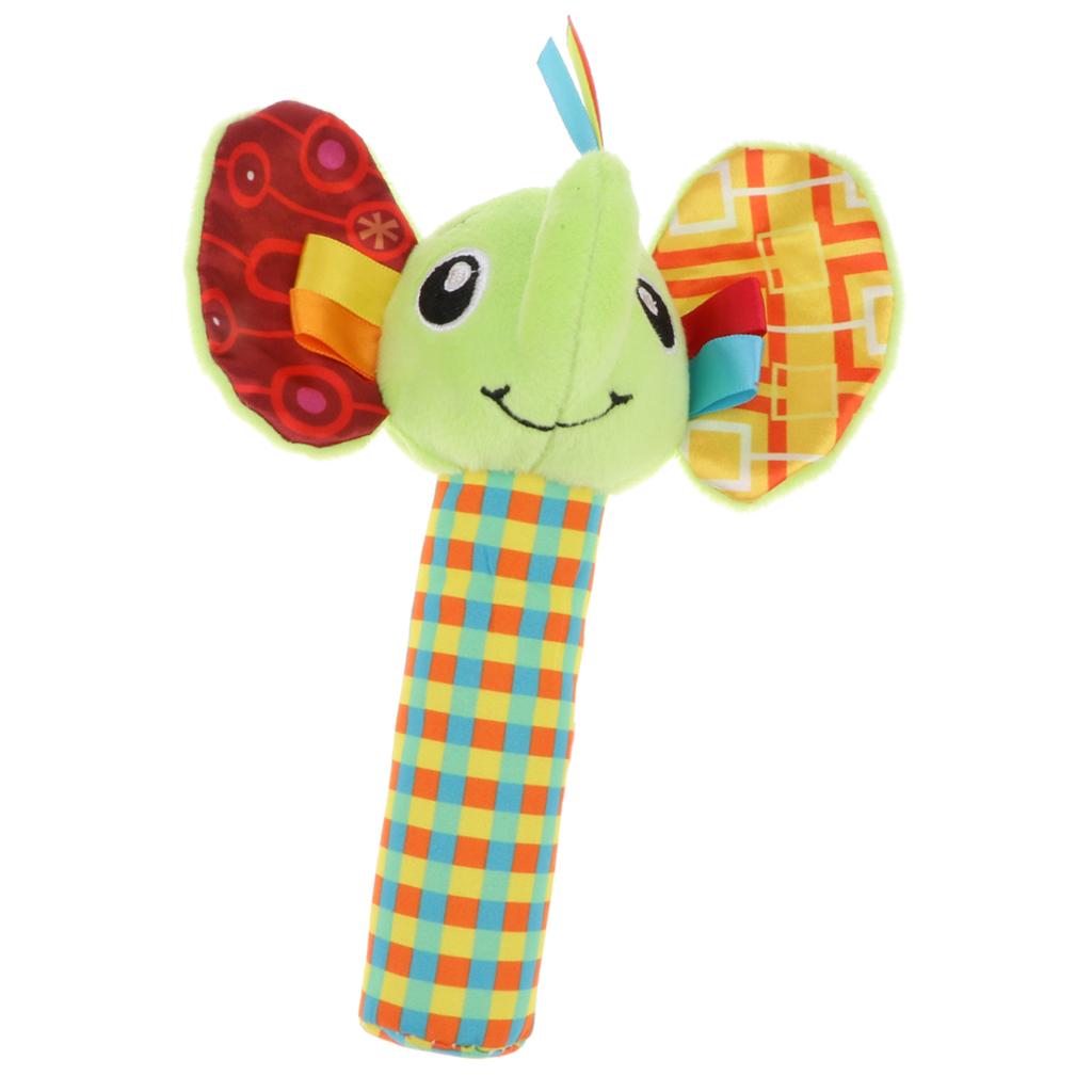 Cute Stuffed Animal Baby Soft Plush Hand Rattle Squeaker Stick Toy Elephant