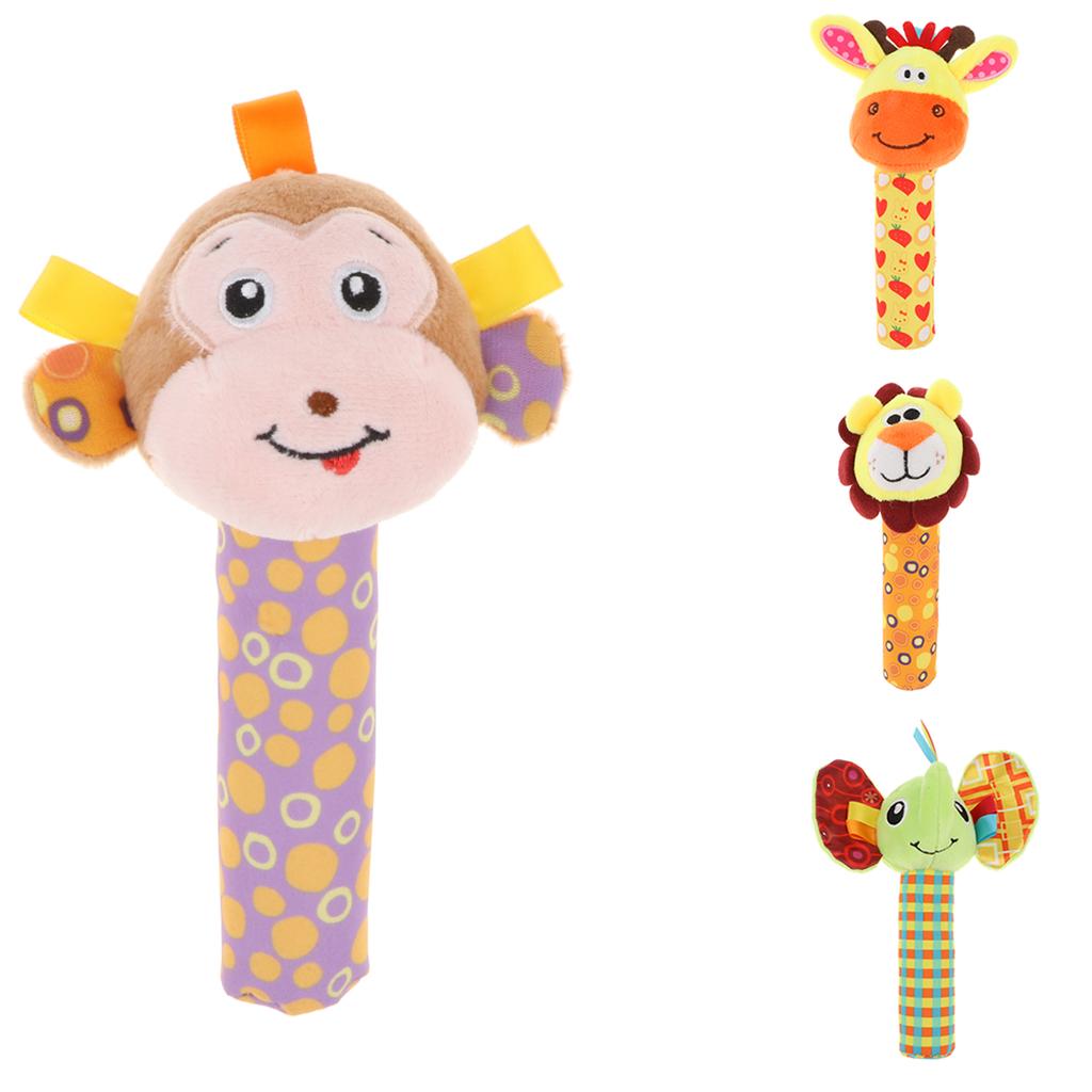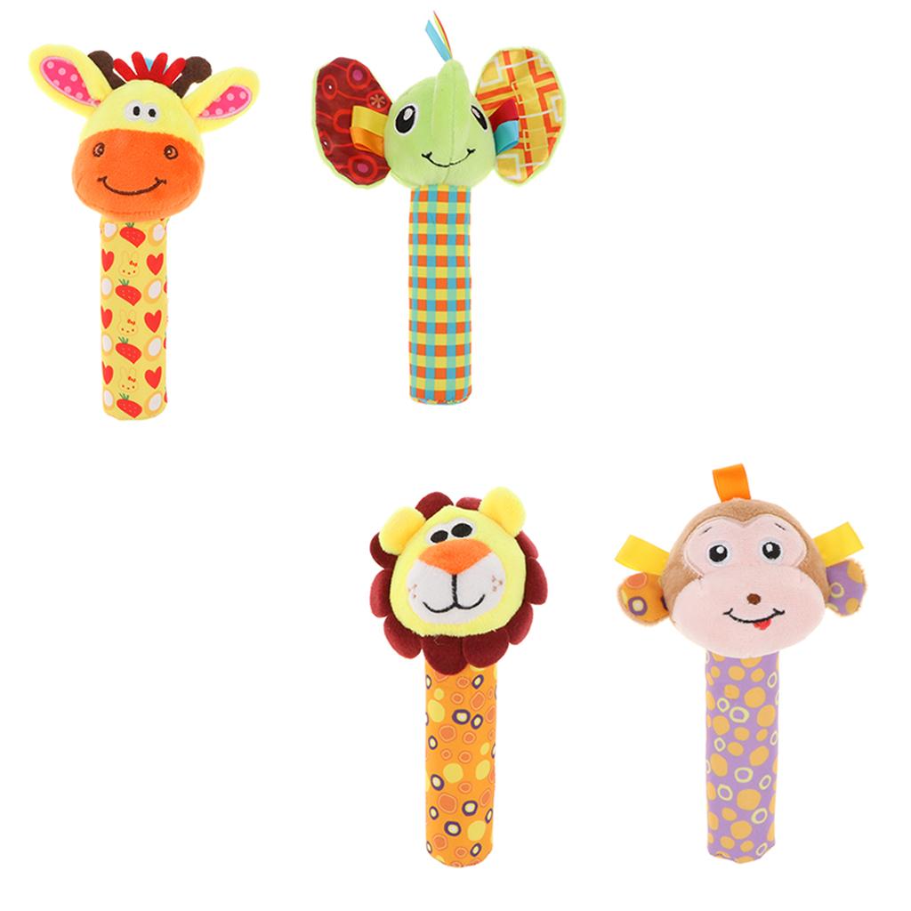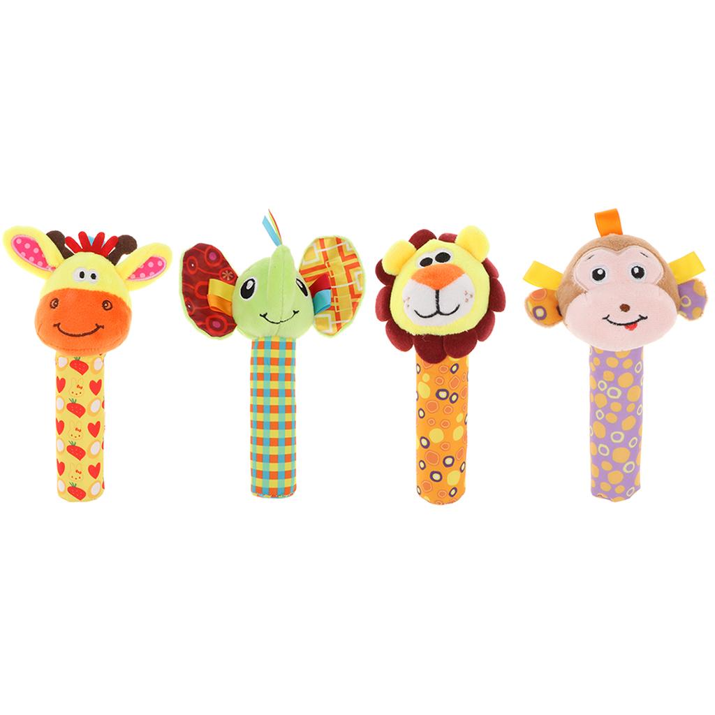Cartoon animal soft plush hand rattle squeaker sticks, developmental toy for baby infant and toddler