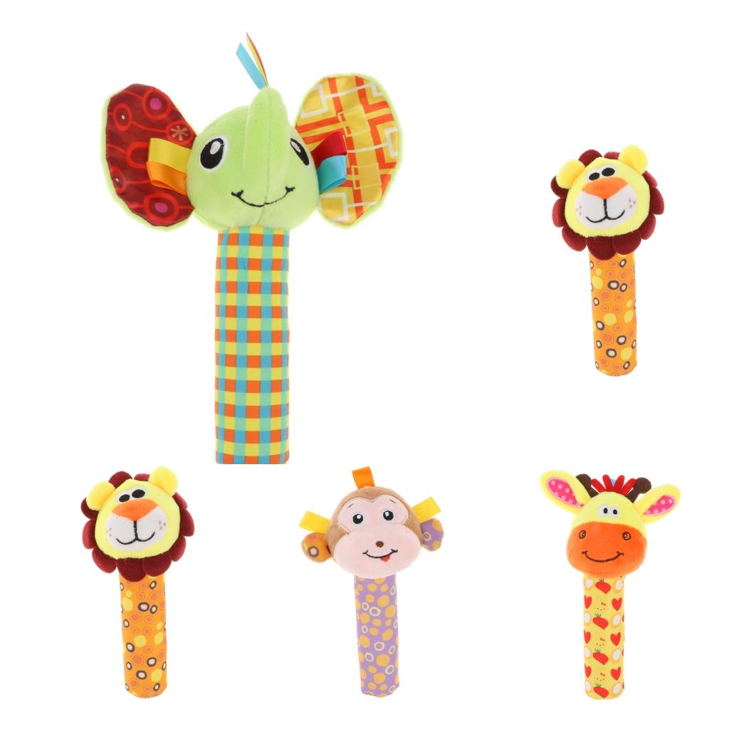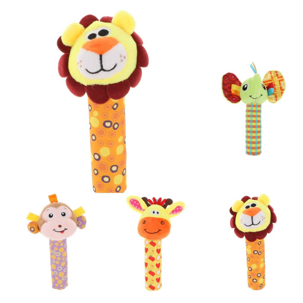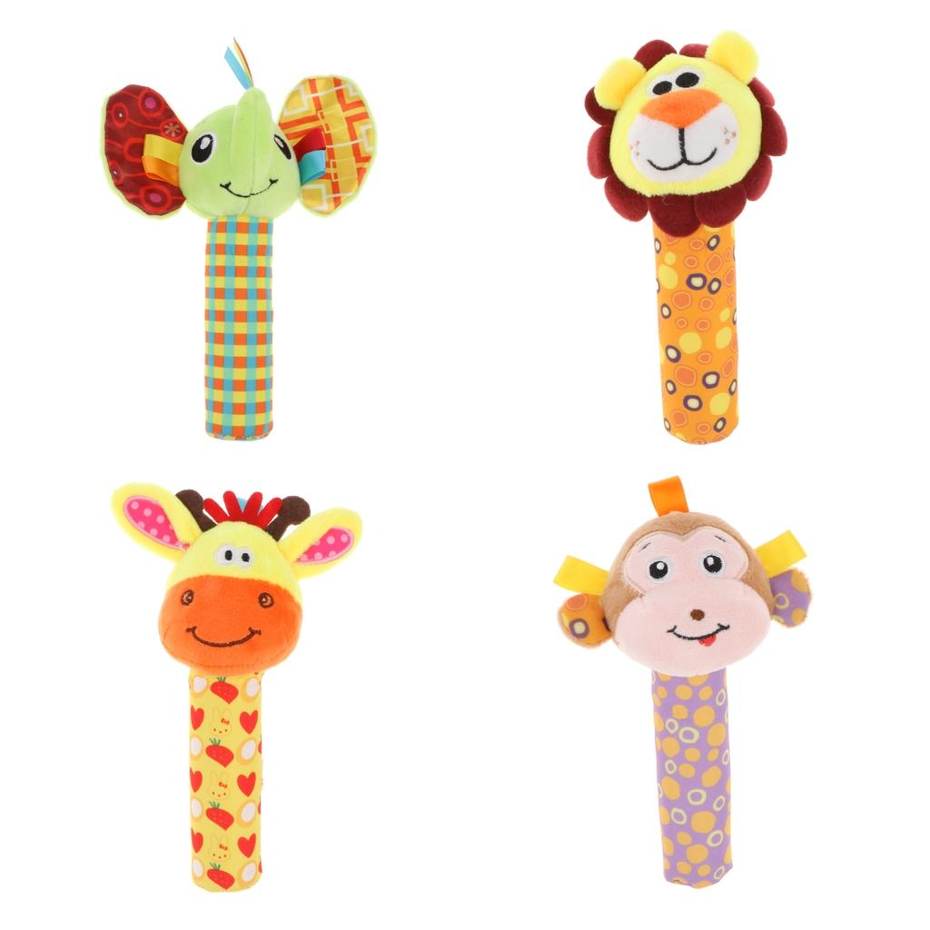Cartoon animal soft plush hand rattle squeaker sticks, developmental toy for baby infant and toddler