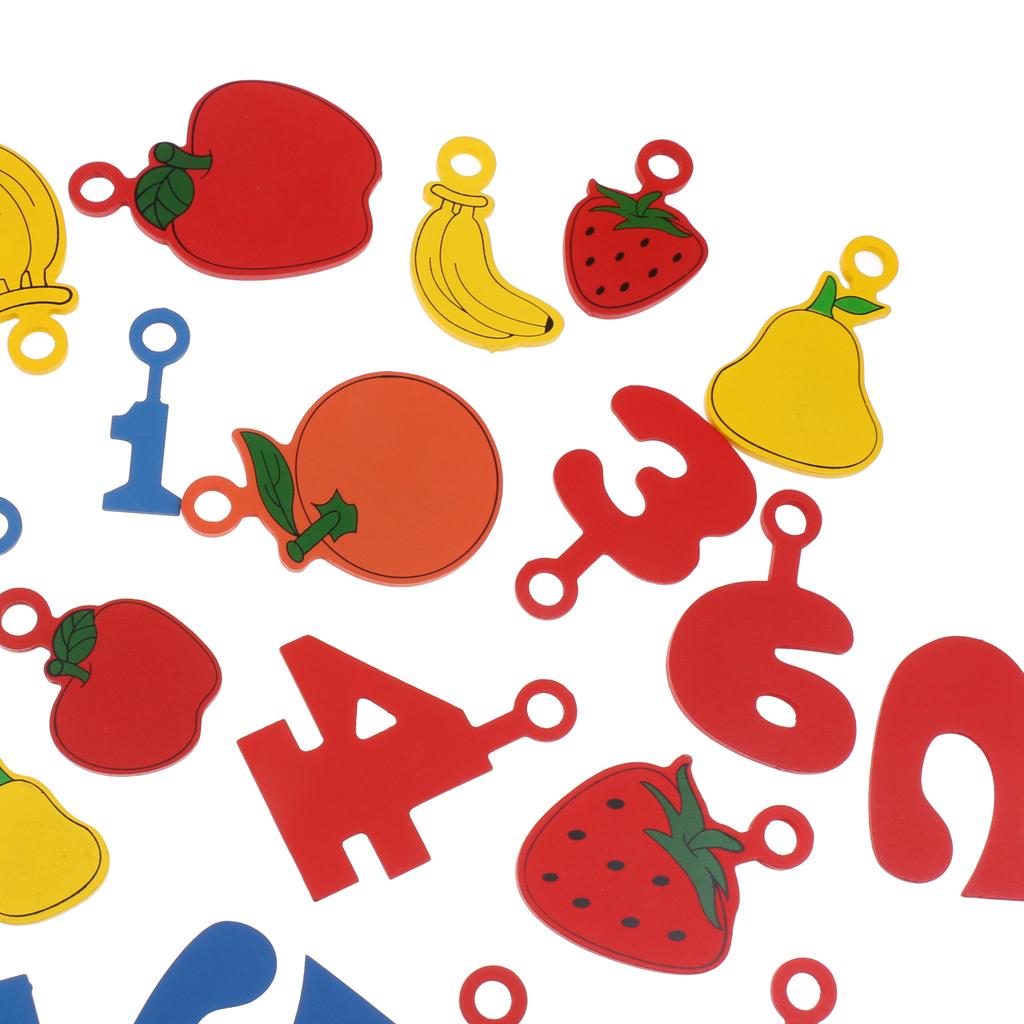 Come with 24 colorful blocks,14 pieces red and black digital blocks,10 pieces fruit blocks
