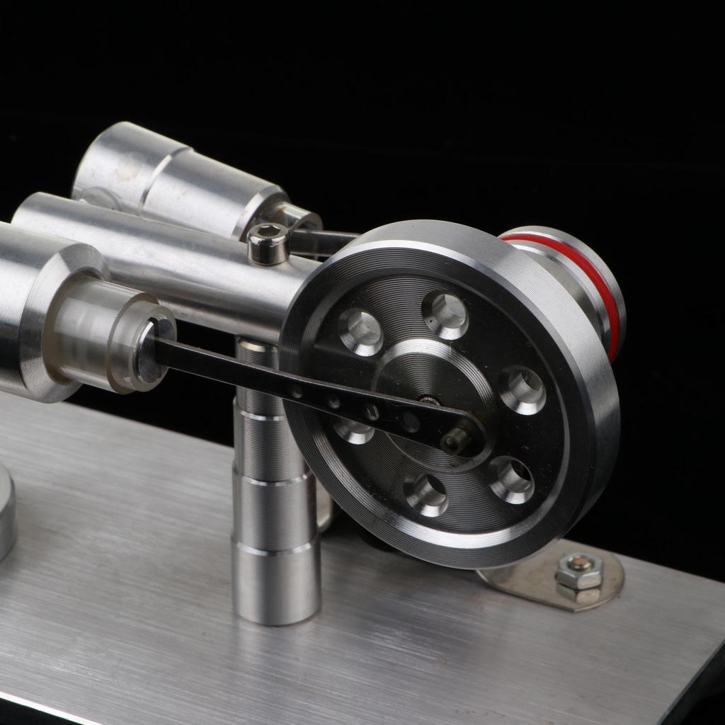 Theory: Similar to internal combustion engine: the burning alcohol lamp provides heat power to make the expansion of gas inside, then the gas molecular internal power increasing and working strongly to the flywheel