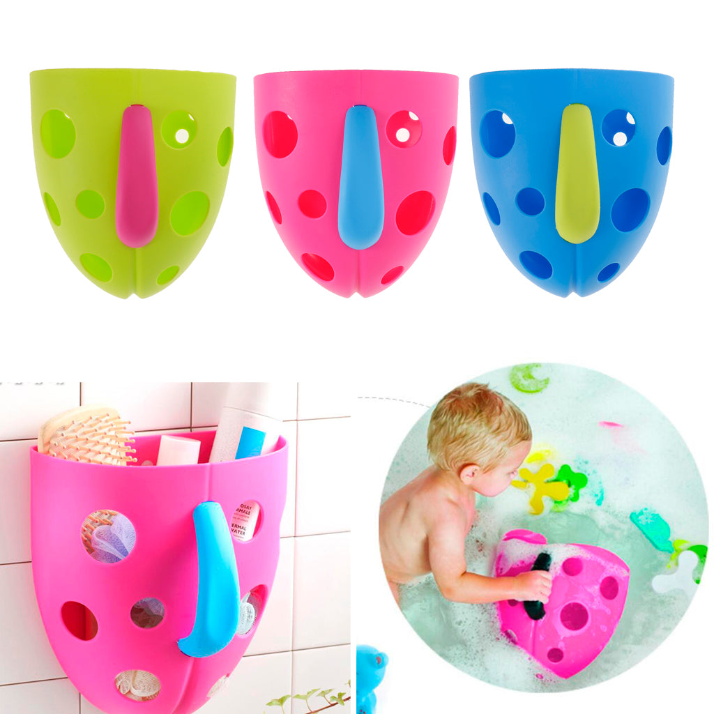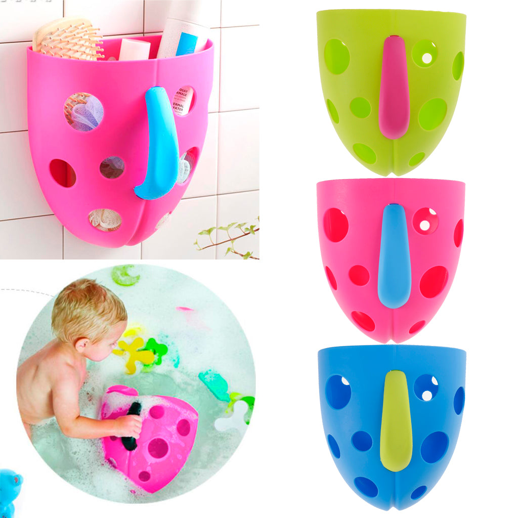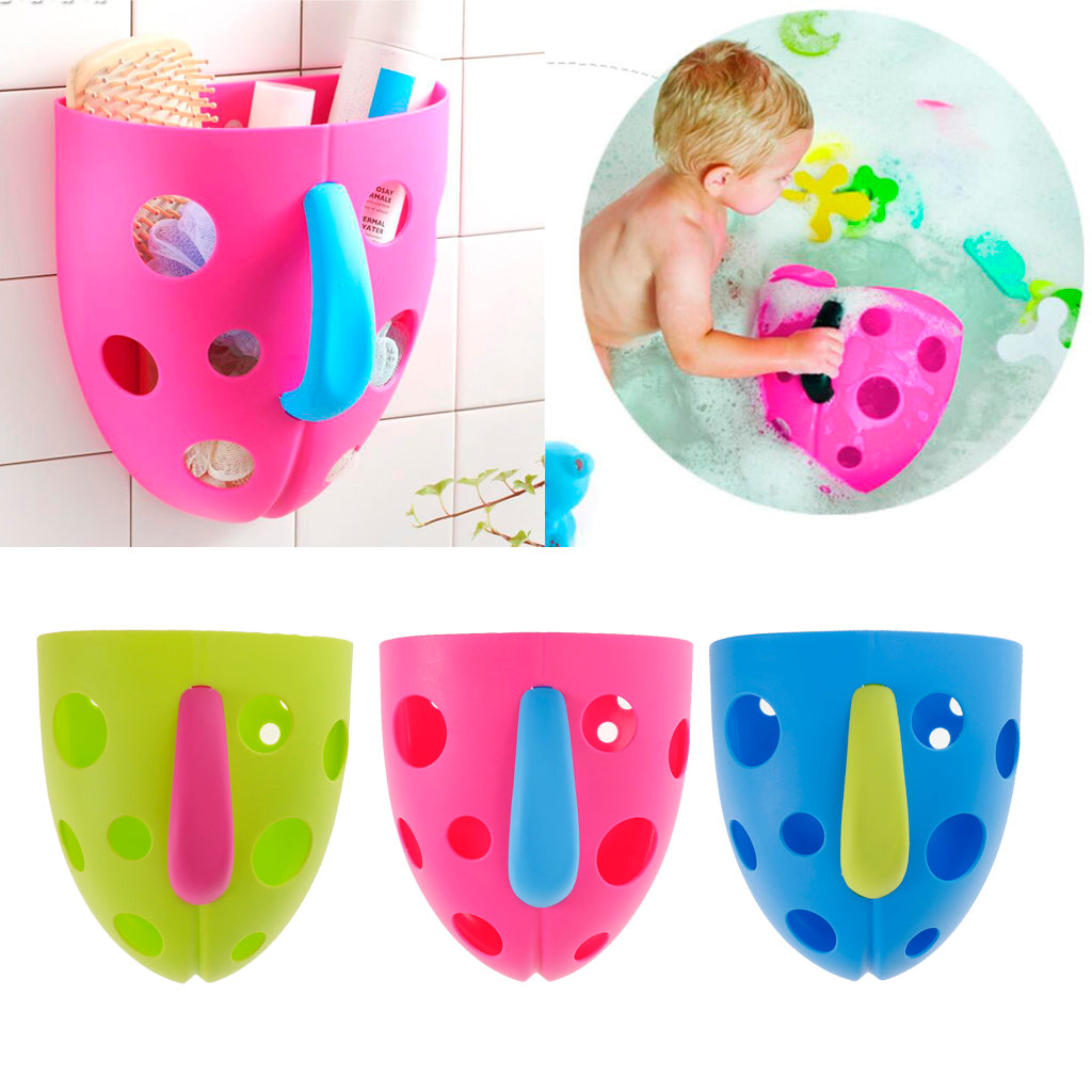 Kids Baby Sucker & Self Hanging Hook Bathing Toys Storage Box Bathroom Accessories –Blue