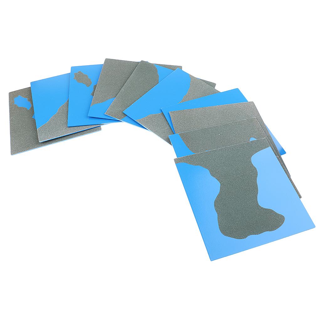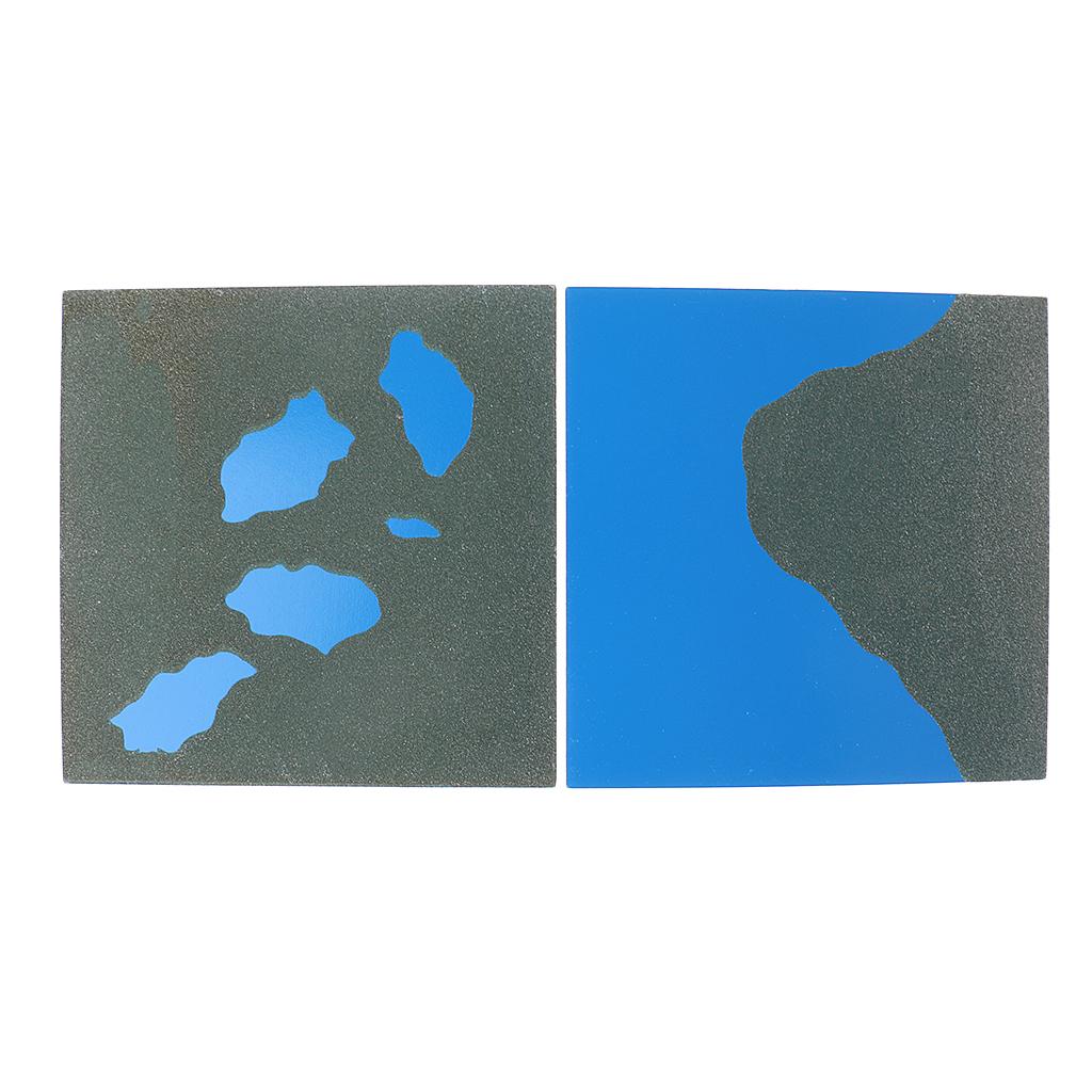 Montessori Geography Material - Sandpaper Land and Water Form Cards with Globe of World Parts.