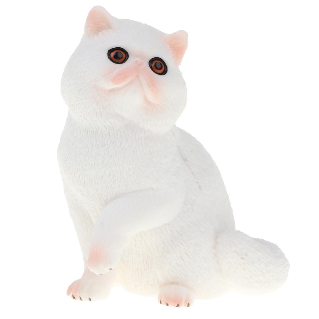 Plastic Realistic Persian Cat Action Figure Kitten Pet Model Wildlife Jungle Animals Playset Eduactional Kids Child Toys Collectibles - White