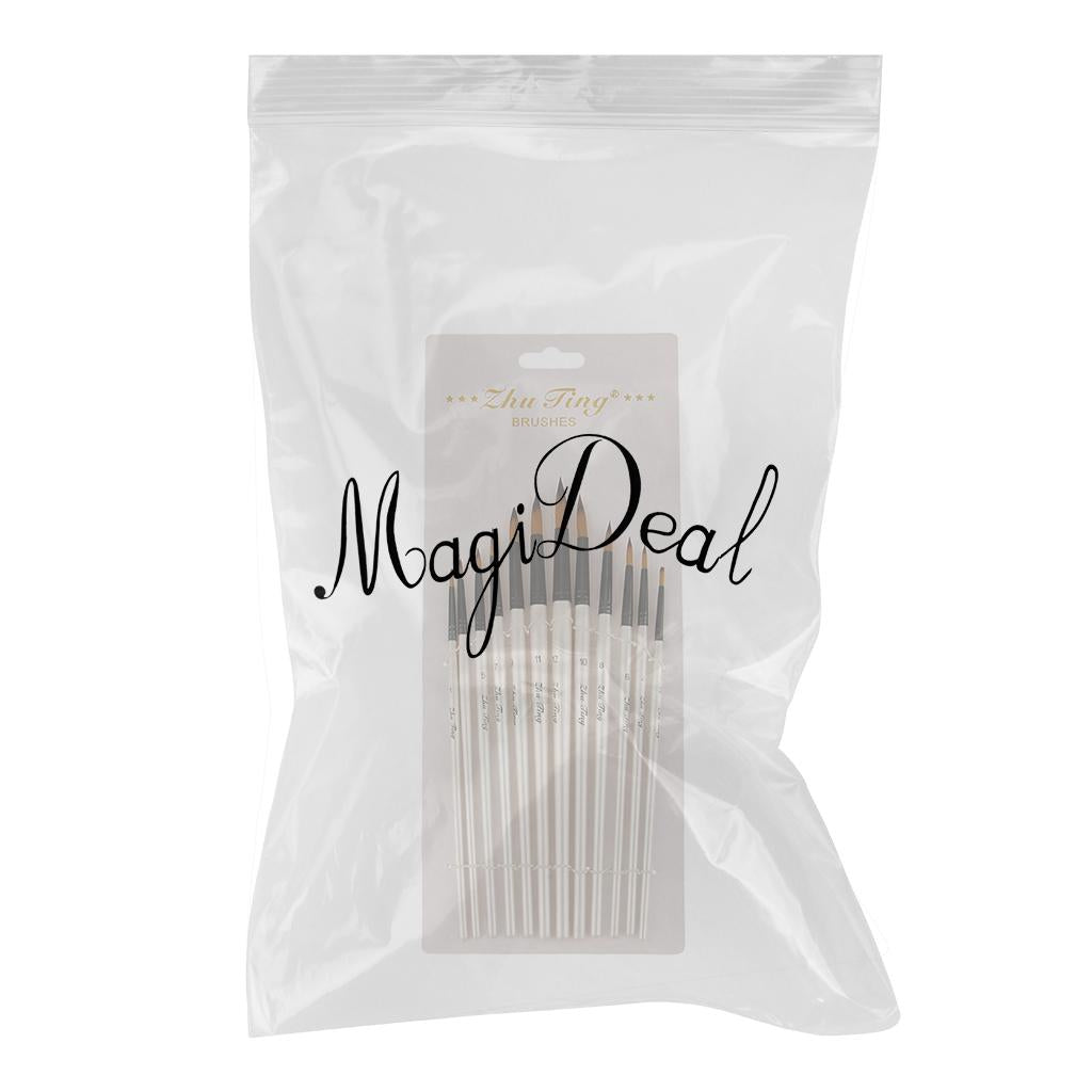 Set of 12 Pcs Nylon Hair Paintbrush Artist Painting Pointed Tip White Handle