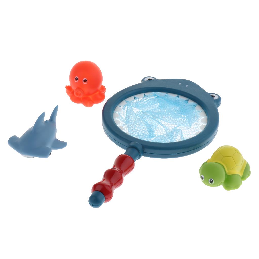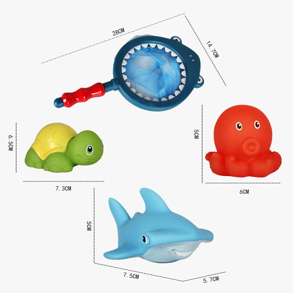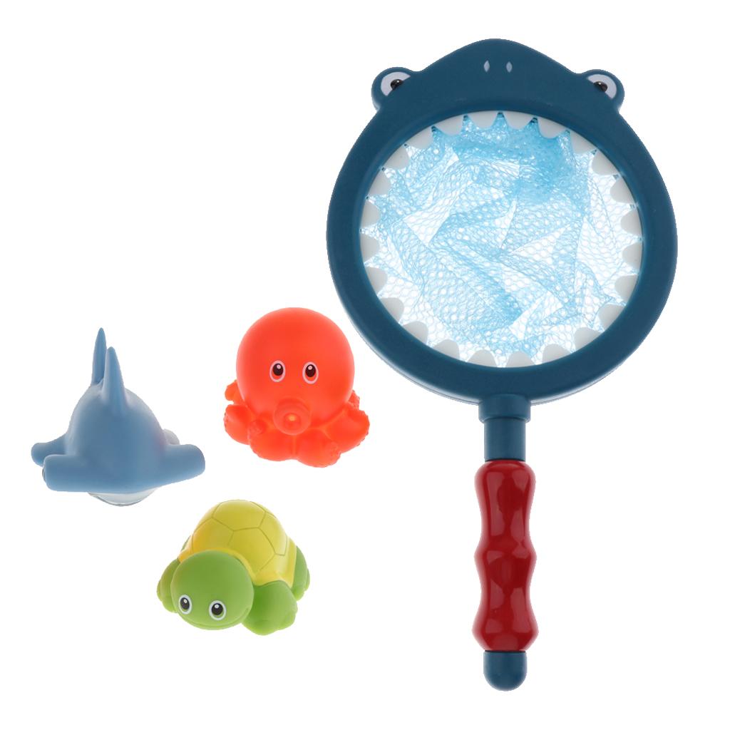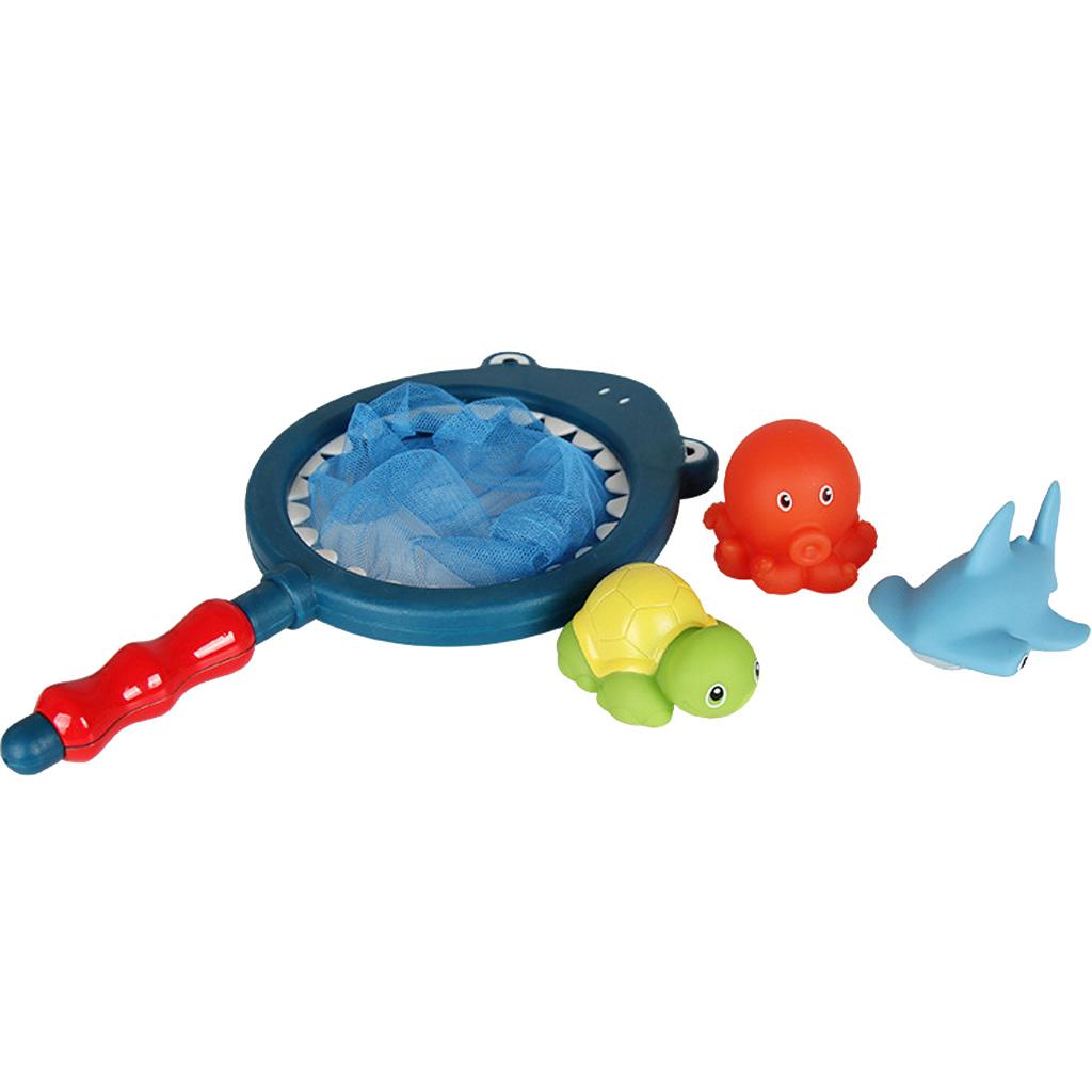 4Pcs fish catching game toy set, includes 1 fishing net and 3 cute ocean animals