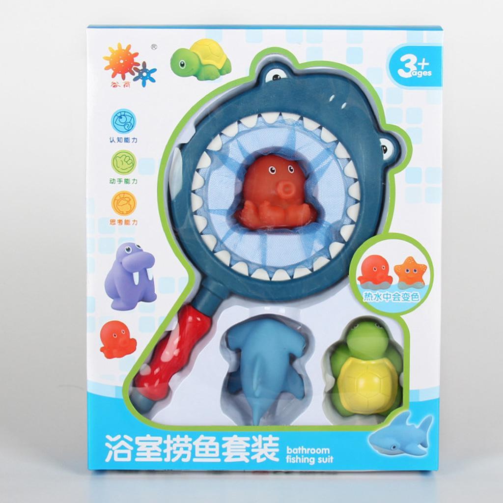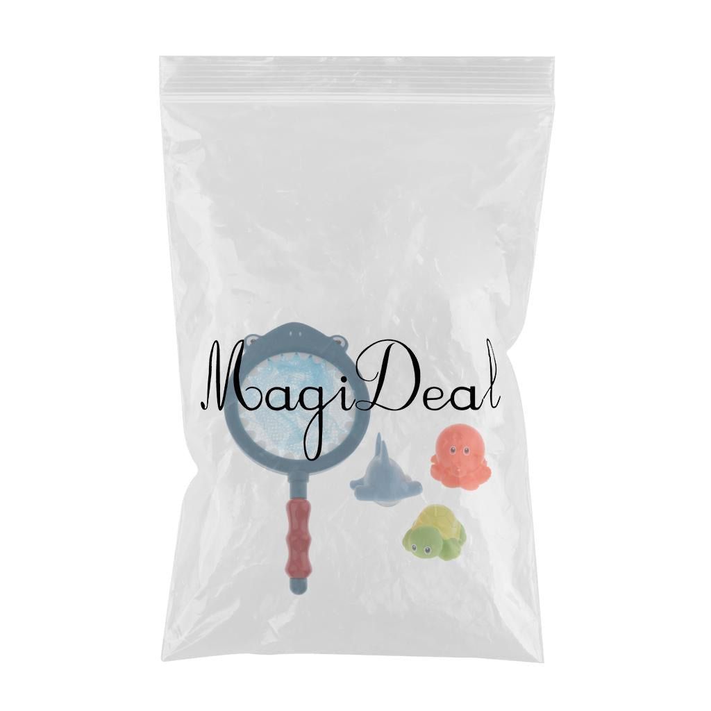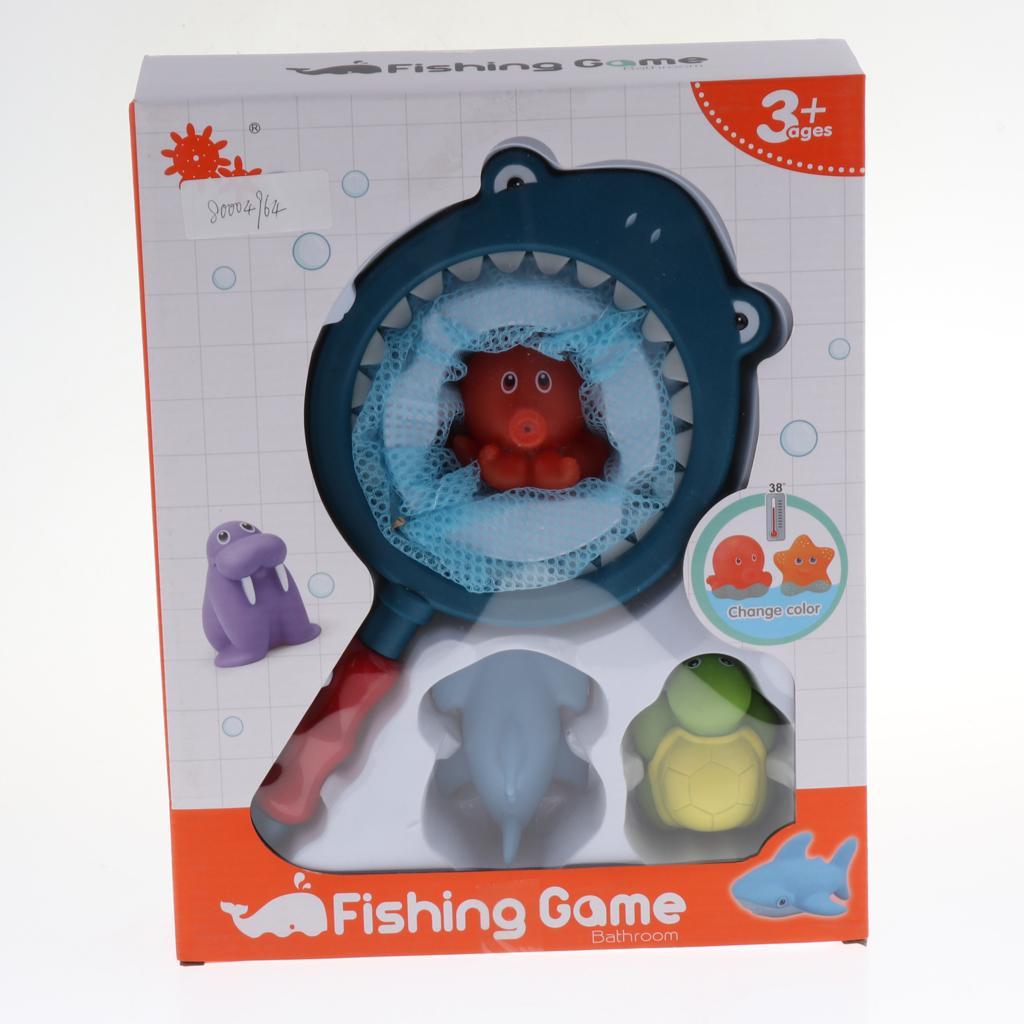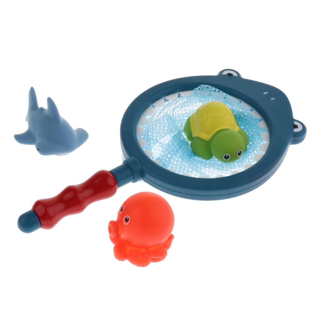 4Pcs fish catching game toy set, includes 1 fishing net and 3 cute ocean animals