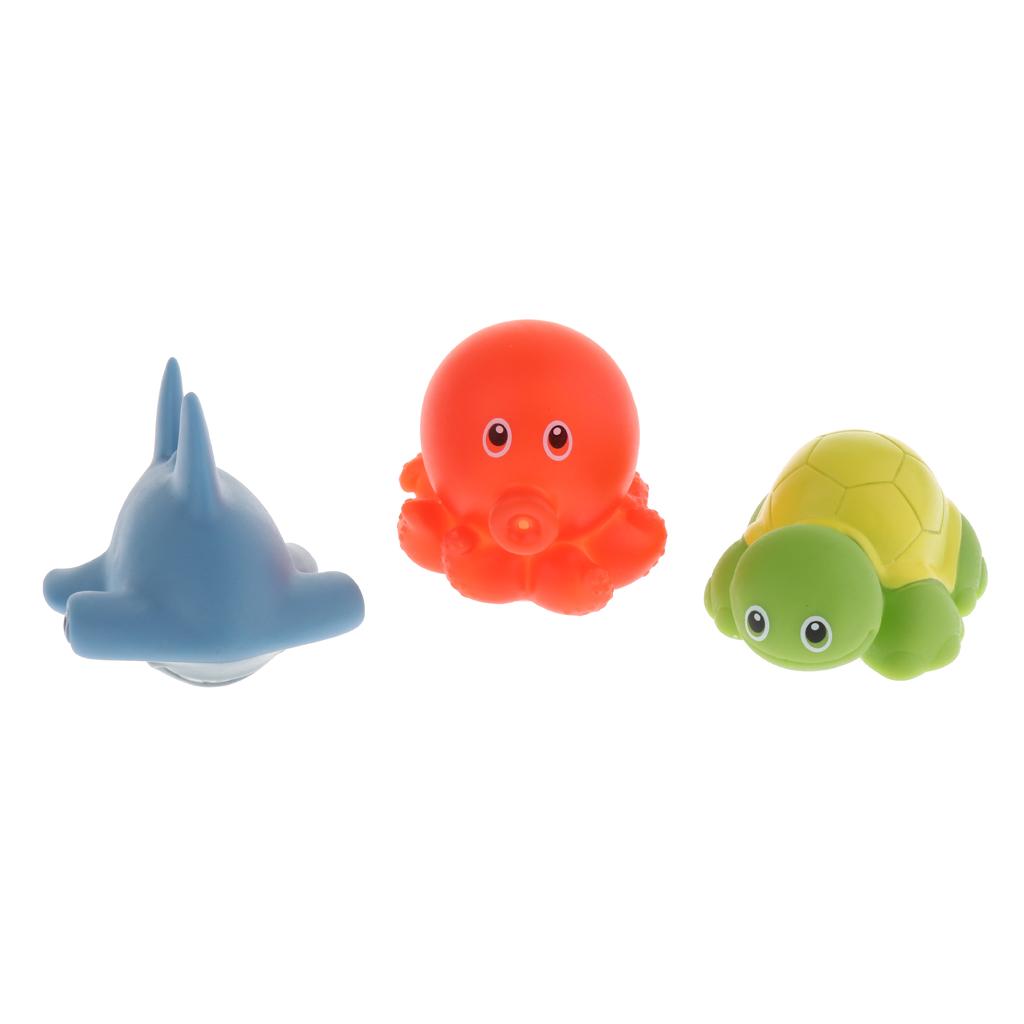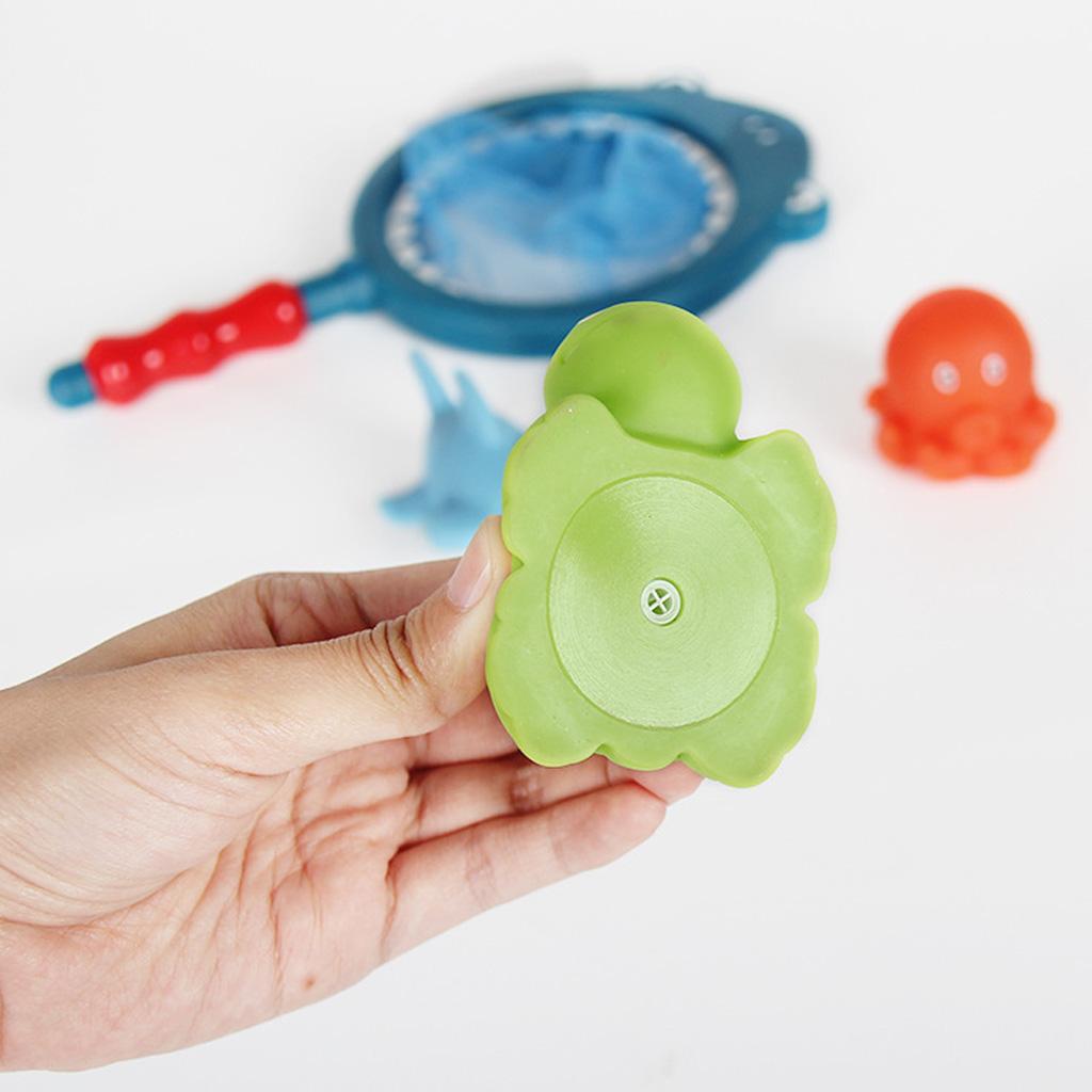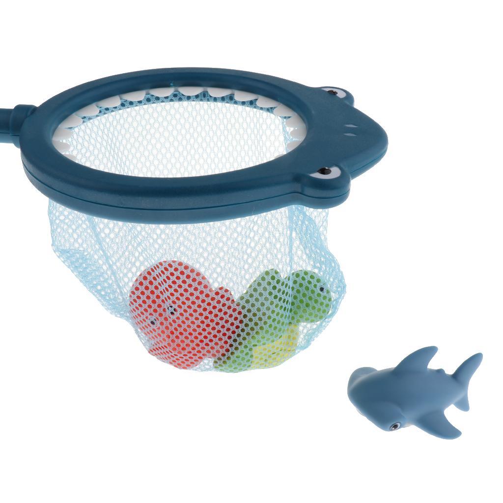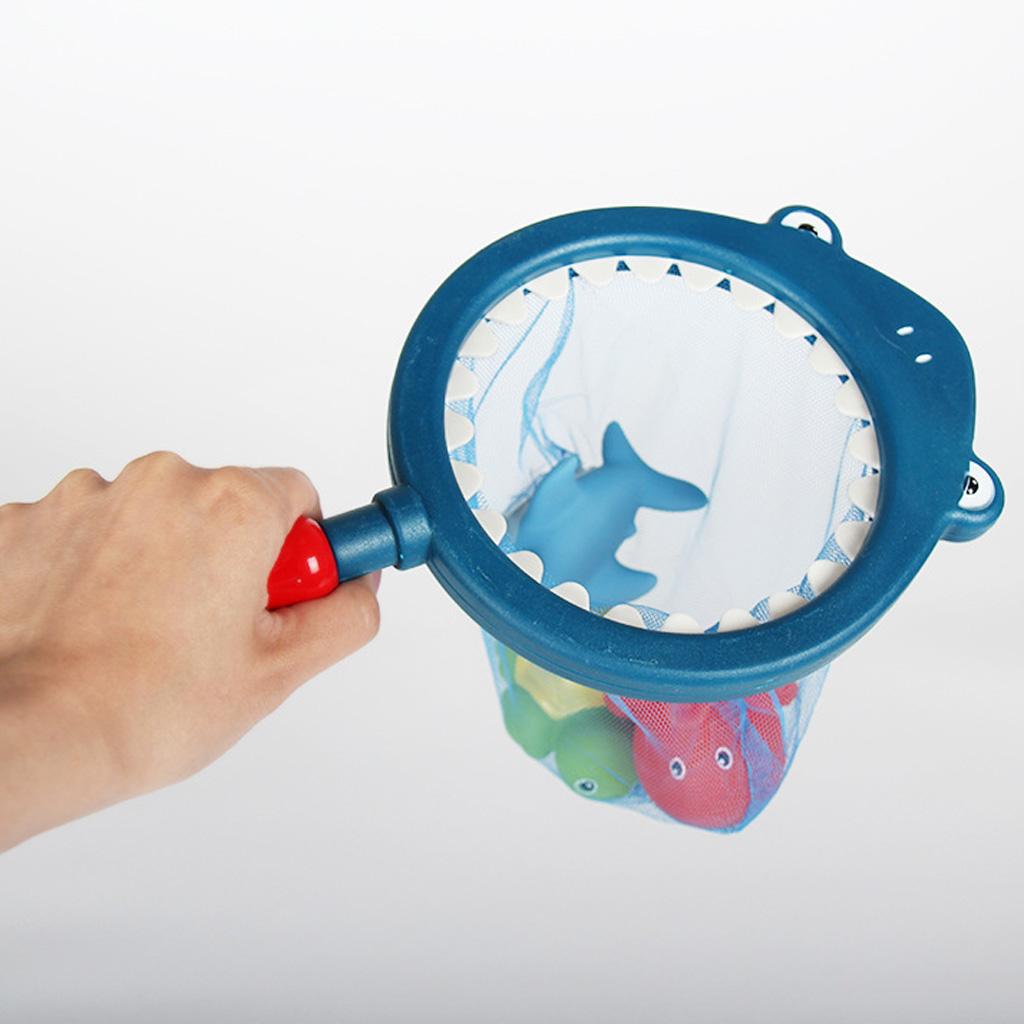 4Pcs fish catching game toy set, includes 1 fishing net and 3 cute ocean animals