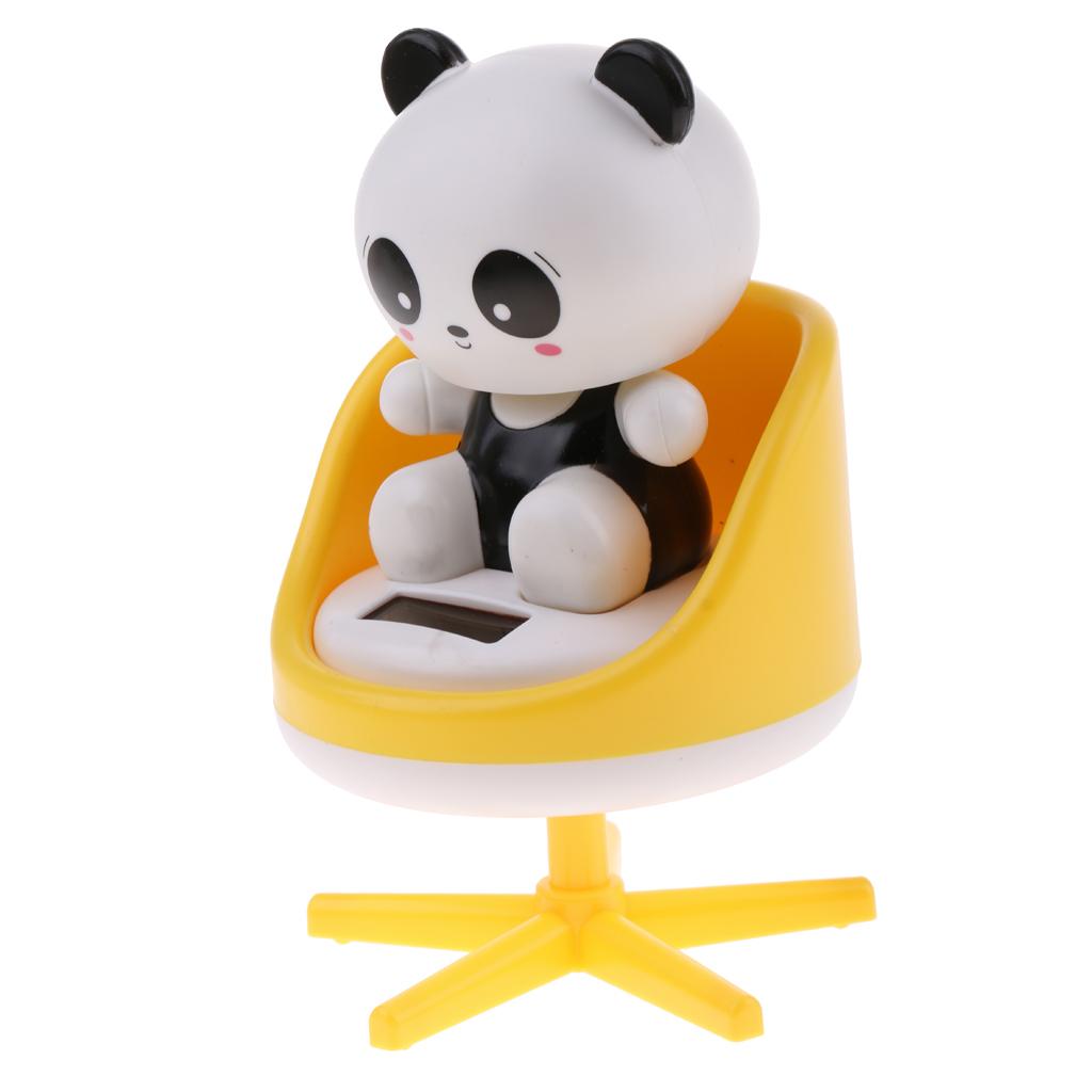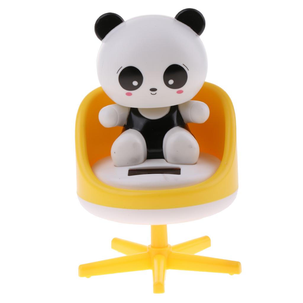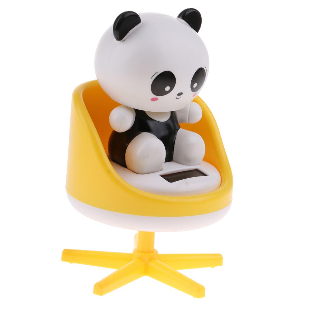 Solar Powered Toys Noding Head Figurine Model Home Car Ornament Panda Yellow