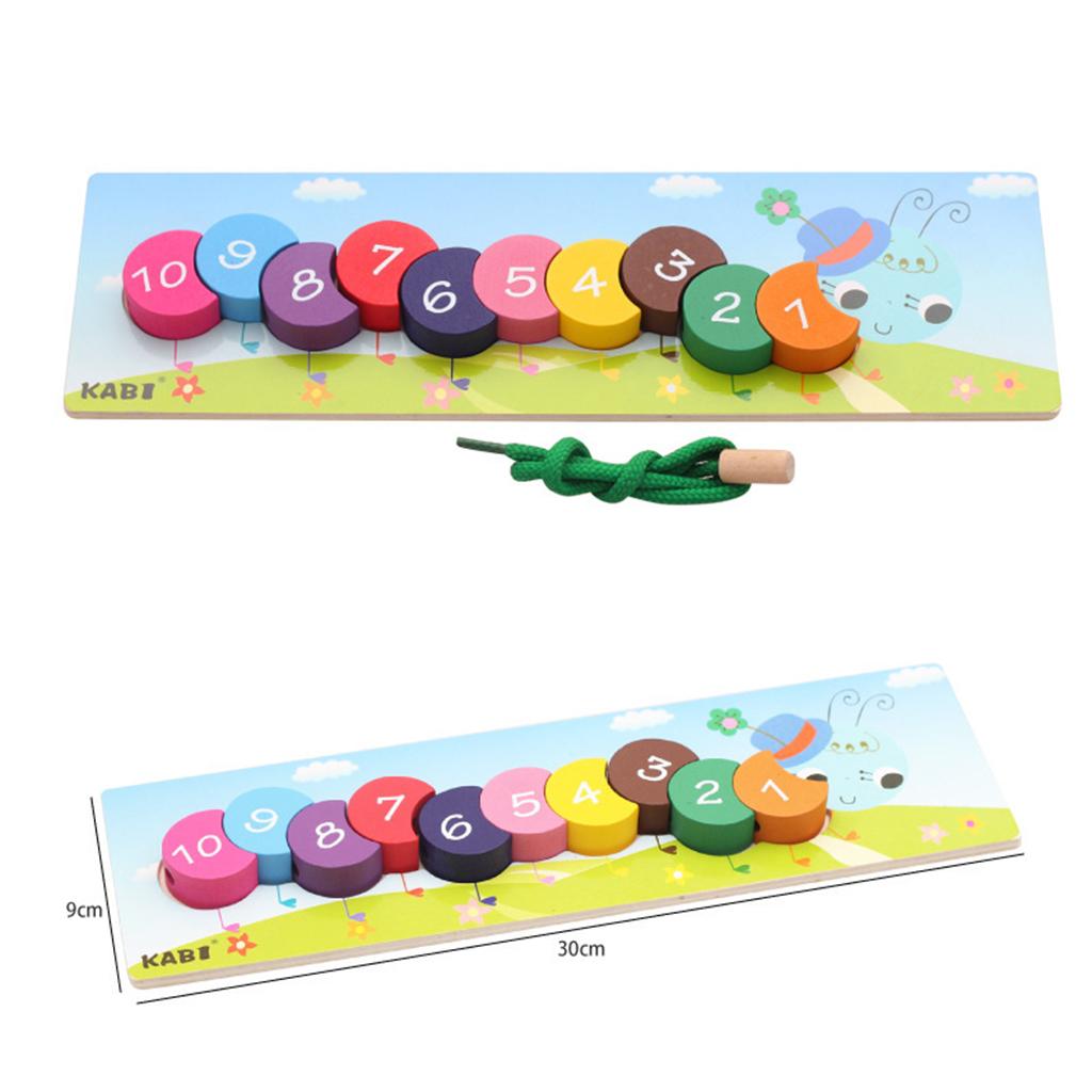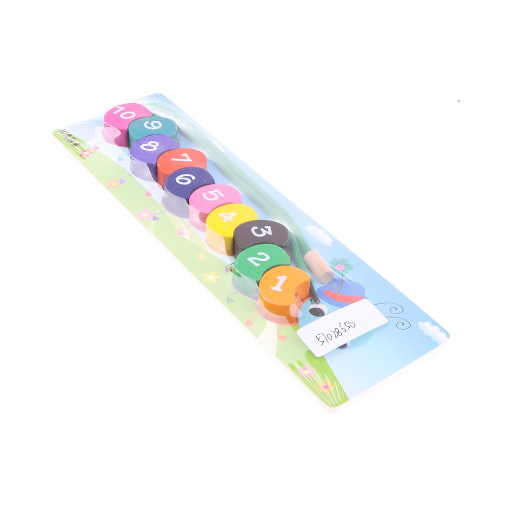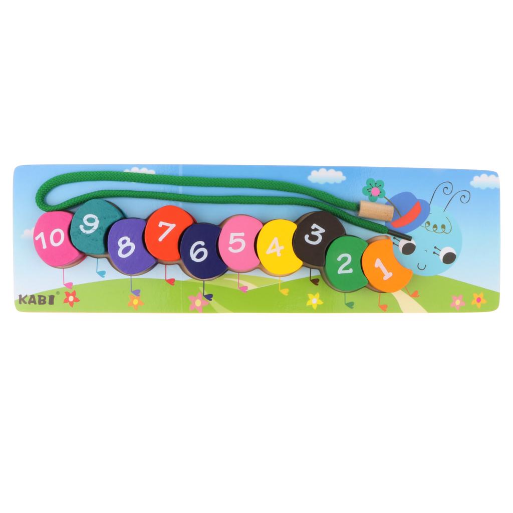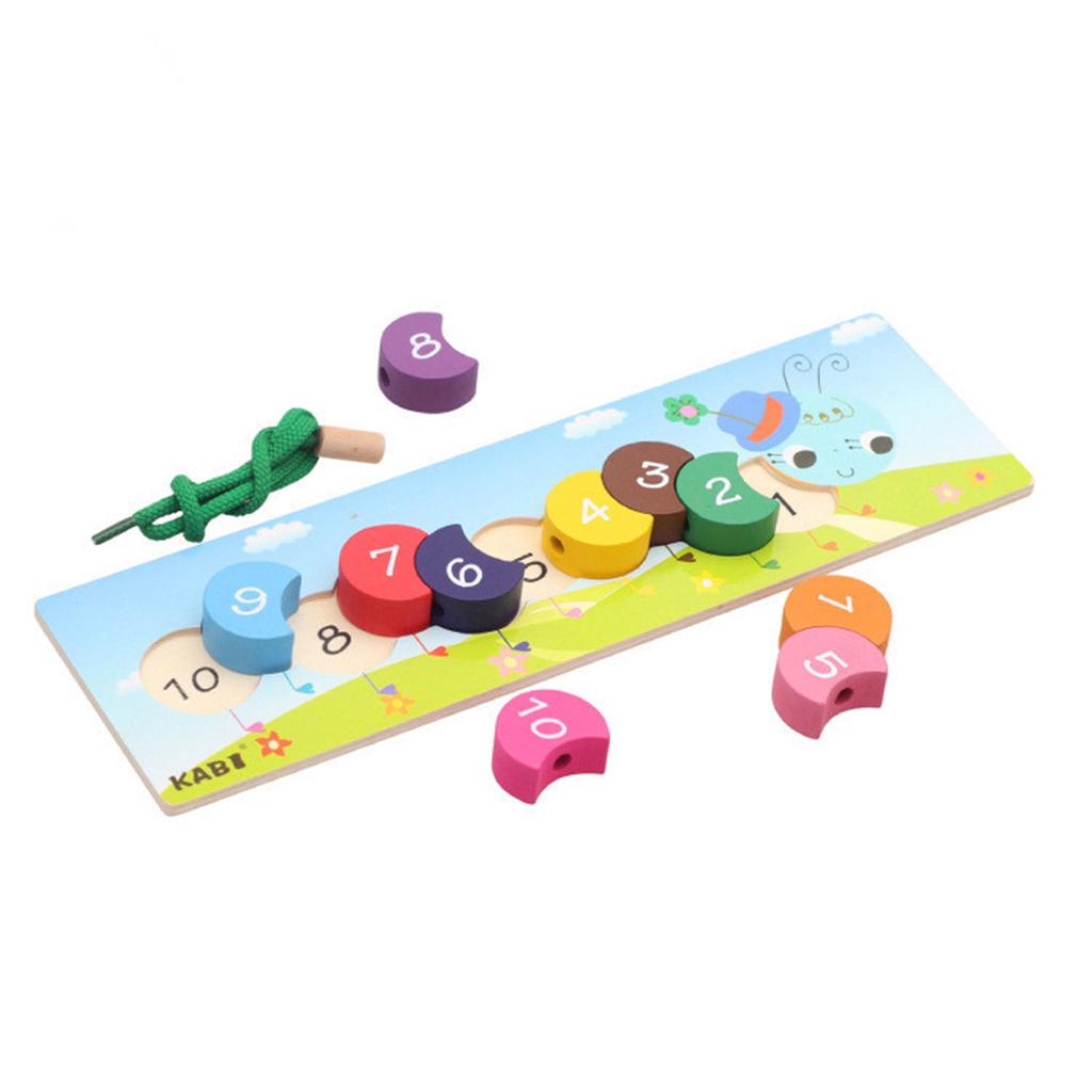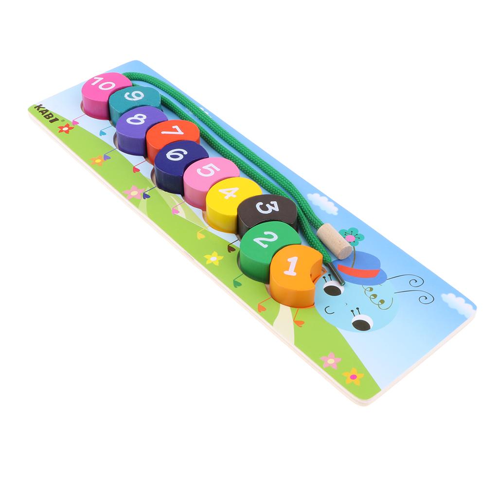 A Lacing Caterpillar Toy, contains a wooden board with 10 colorful beads
