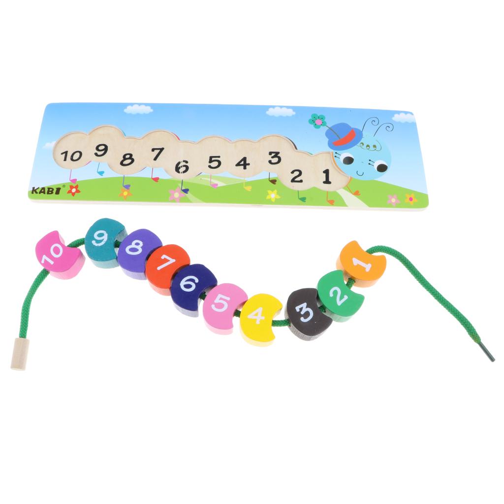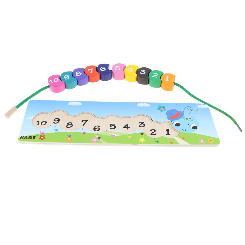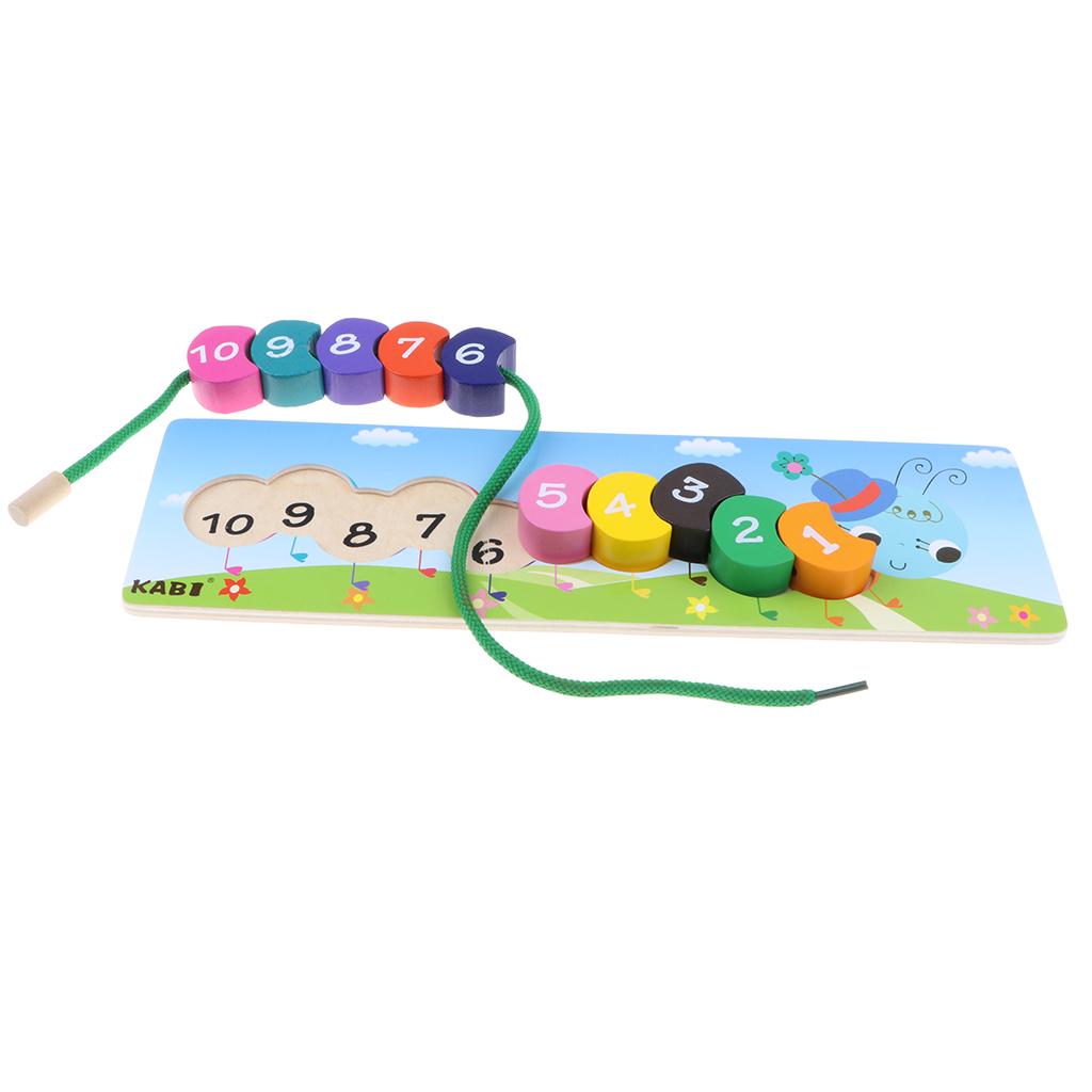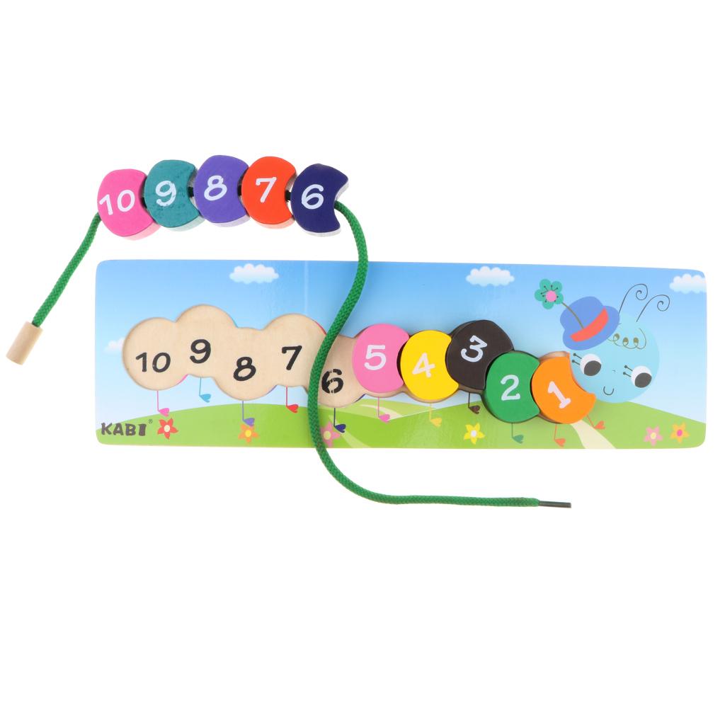 A Lacing Caterpillar Toy, contains a wooden board with 10 colorful beads