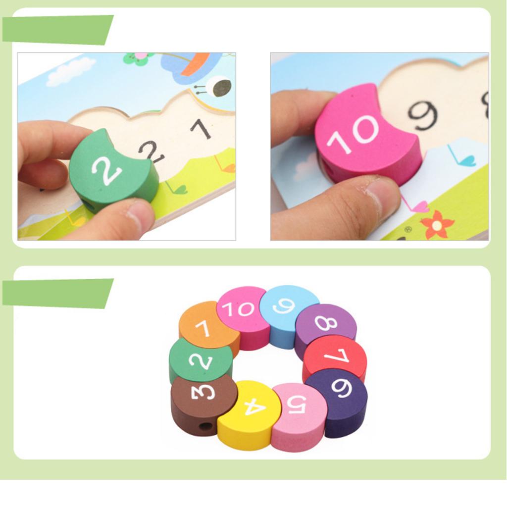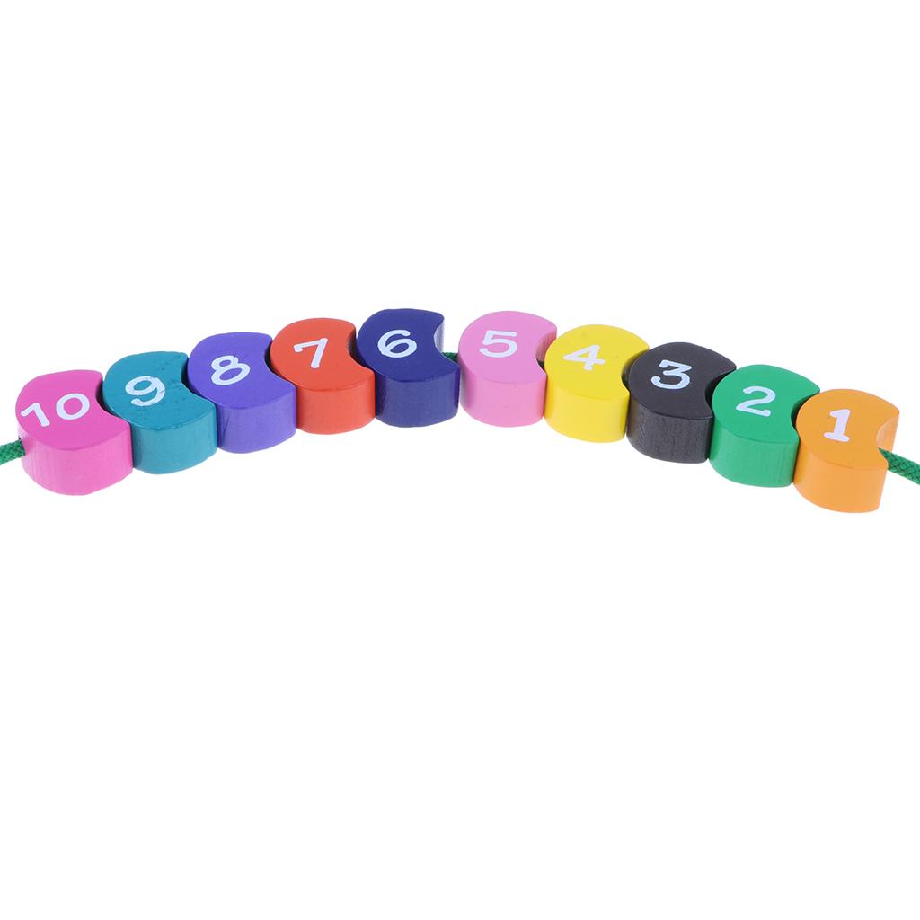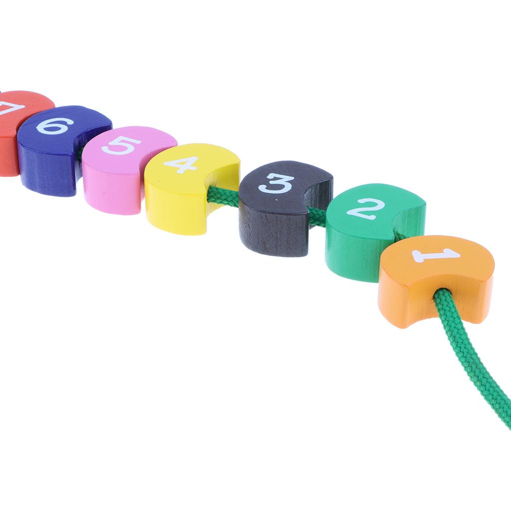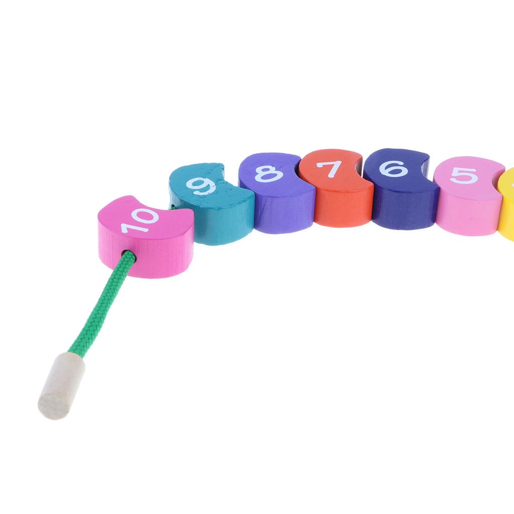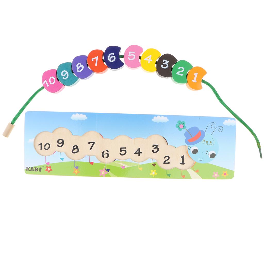 A Lacing Caterpillar Toy, contains a wooden board with 10 colorful beads