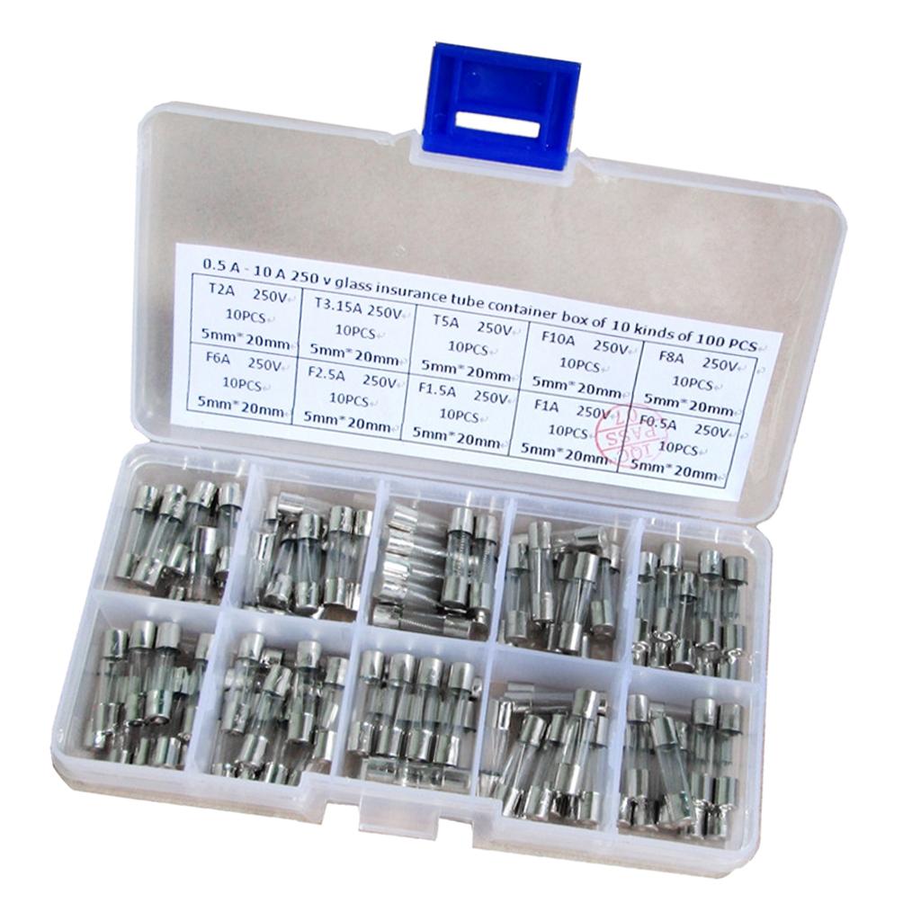 Package Includes 10 kinds of fuse tube: T2A 250V; T3.15A 250V; T5A 250V; F10A 250V; F8A 250V; F6A 250V; F2.5A 250V; F1.5A 250V; F1A 250V;F0.5A 250V