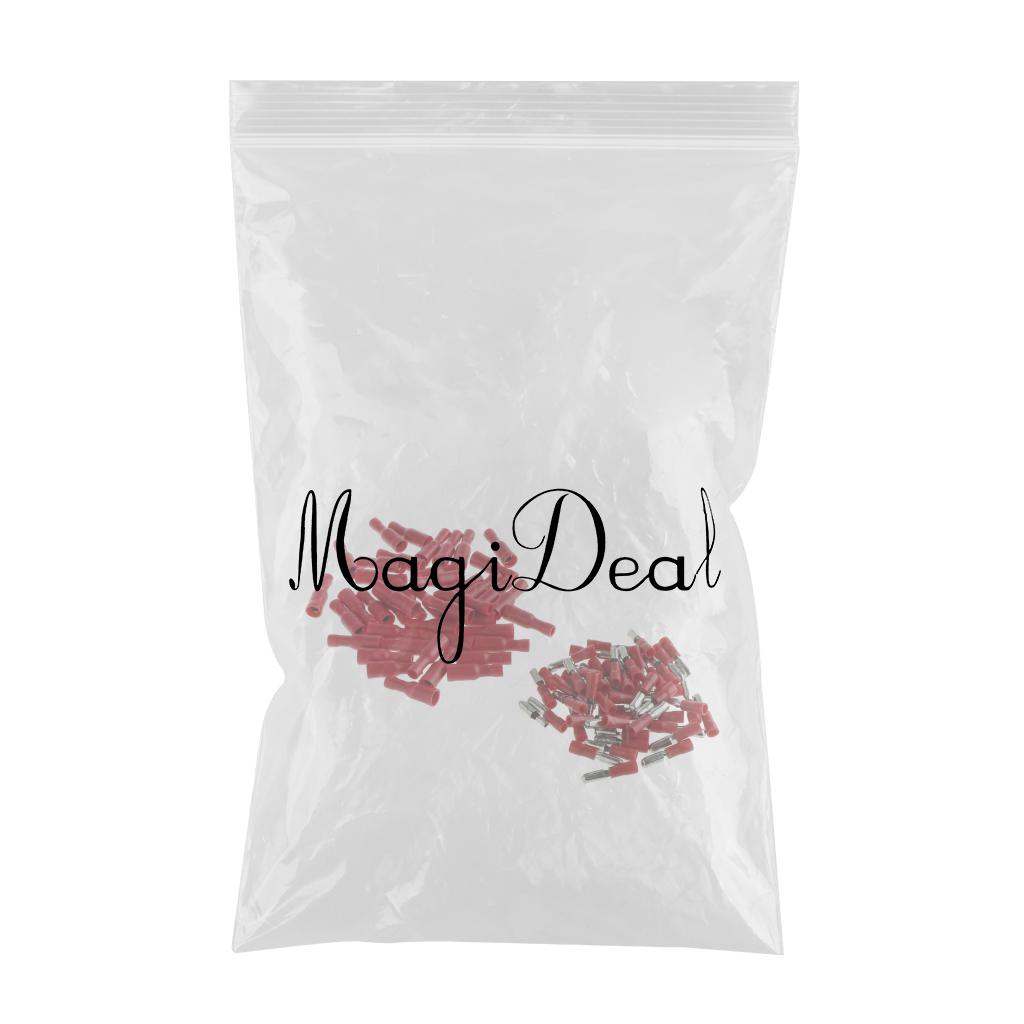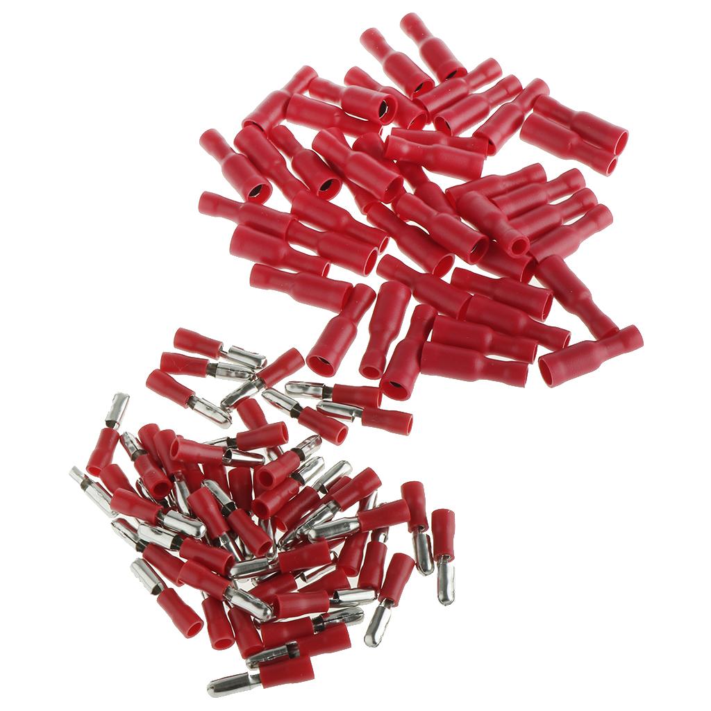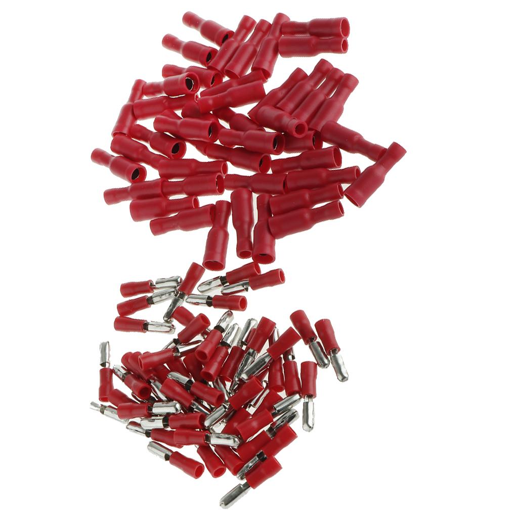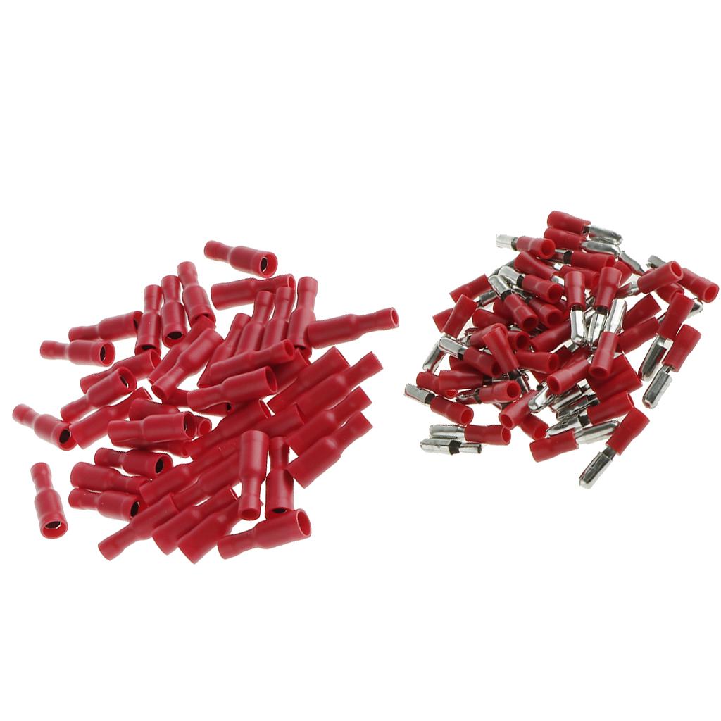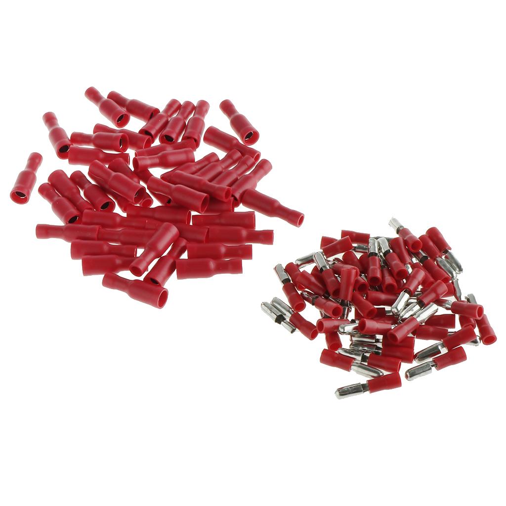 100pcs Red fully insulated female&male bullet butt connector crimp terminals.