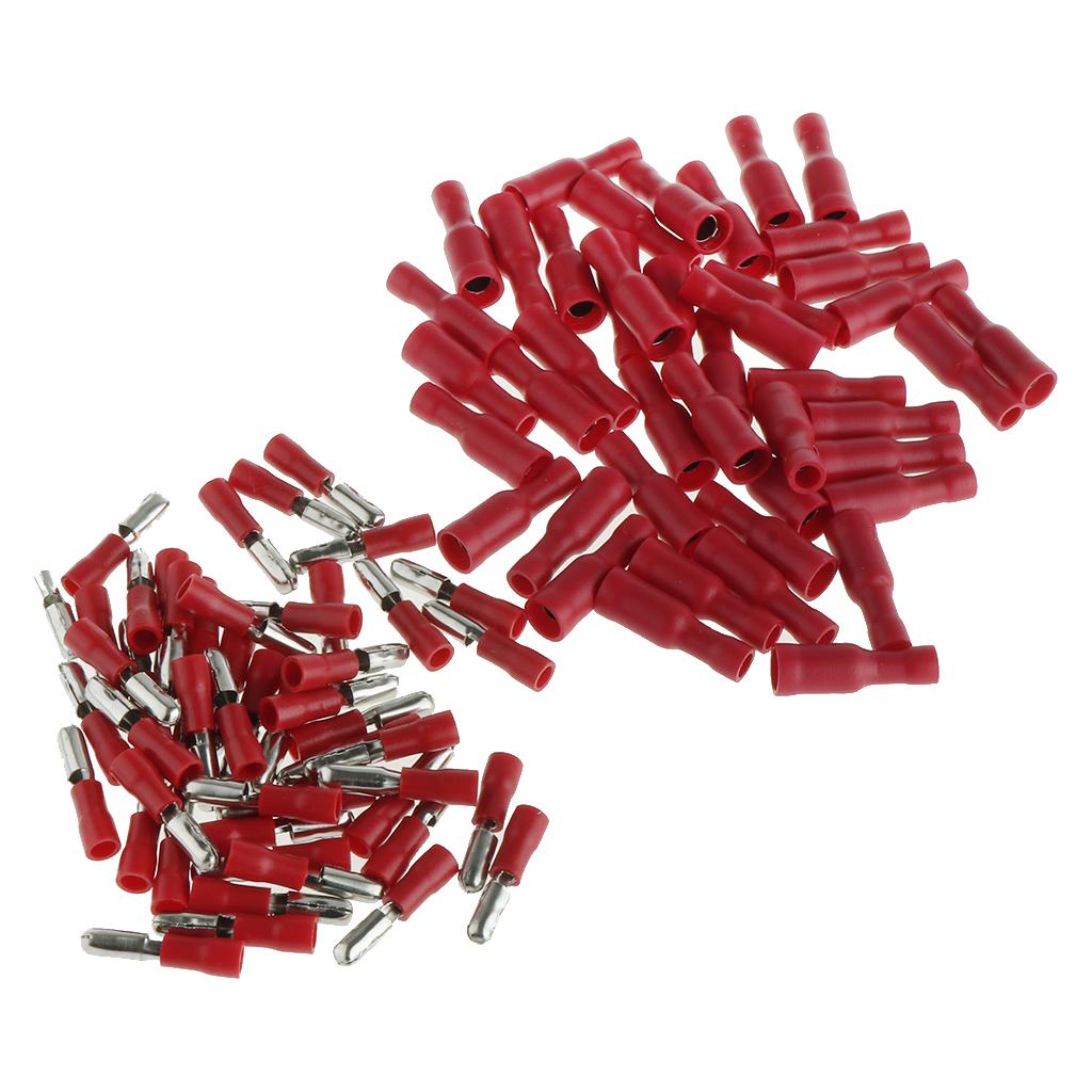 Including 50pcs female bullet insulated crimp terminals and 50pcs male bullet insulated crimp terminals.