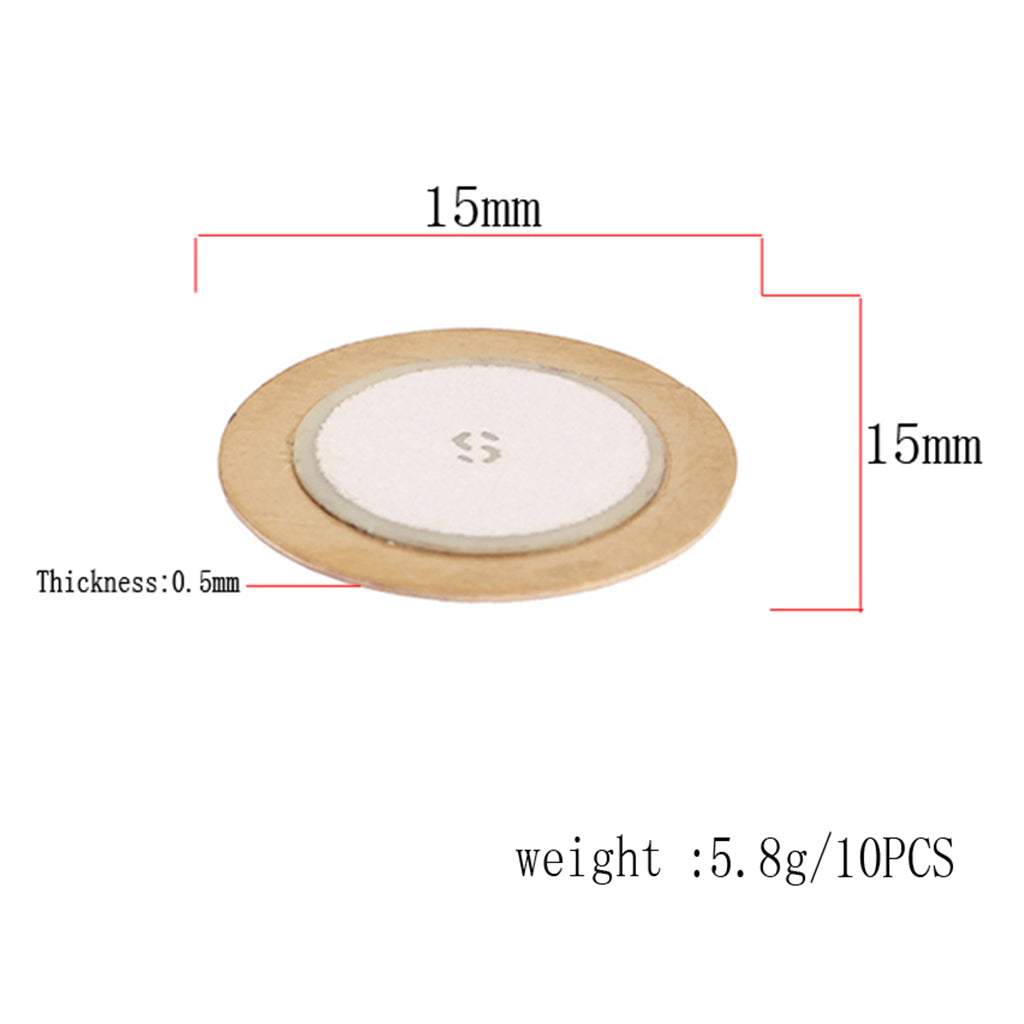 10Pcs 15mm Transducer Piezo Elements Buzzer Sounder Sensor Disc Copper Instruments DIY
