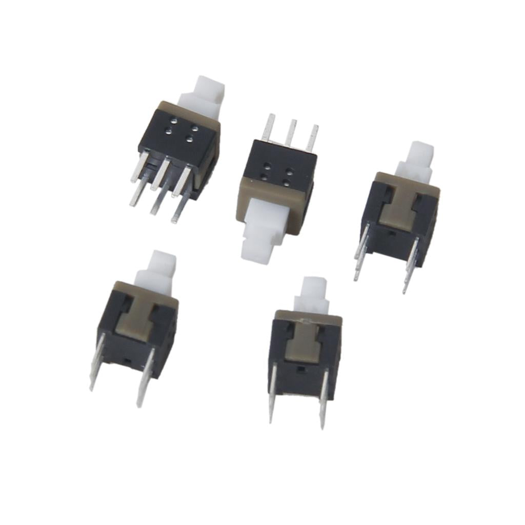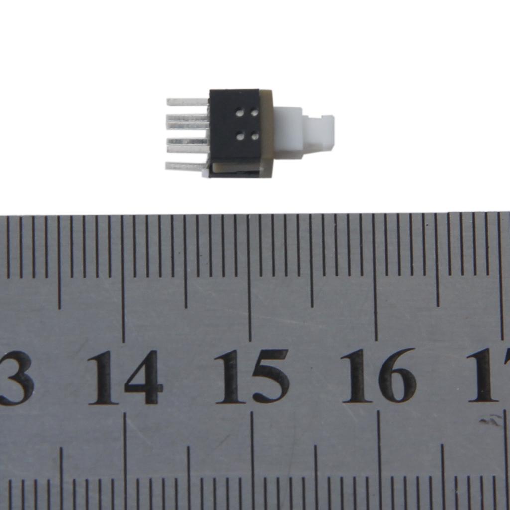 Mini self-locking switch, 6 pins design, 5.8 mm x 5.8 mm in size. The high precision mechanism design of this self-locking switch provides accurate operation and long life use. This self-locking push button is widely used in electronic fields, instrument and meter, as well as household appliance.