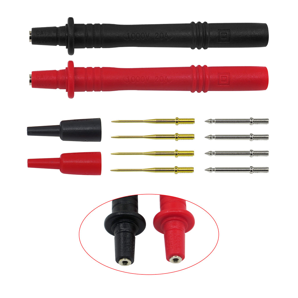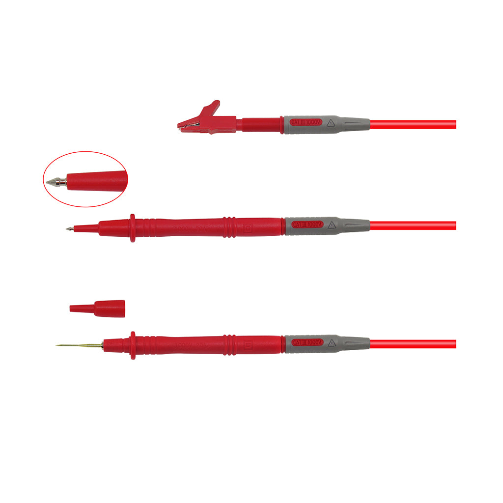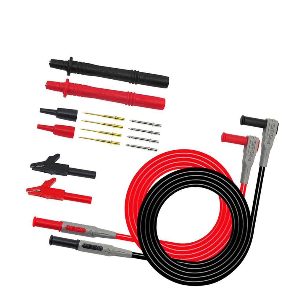 Electronic test leads kit includes: 2x 4mm banana plug test leads, 2x alligator clips, 2x test probe, 8x probe tips(4 x gold plated Ultra thin tips, 4 x standard tips, with protective cover case)