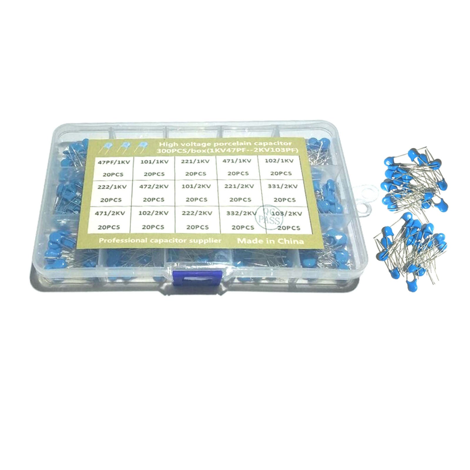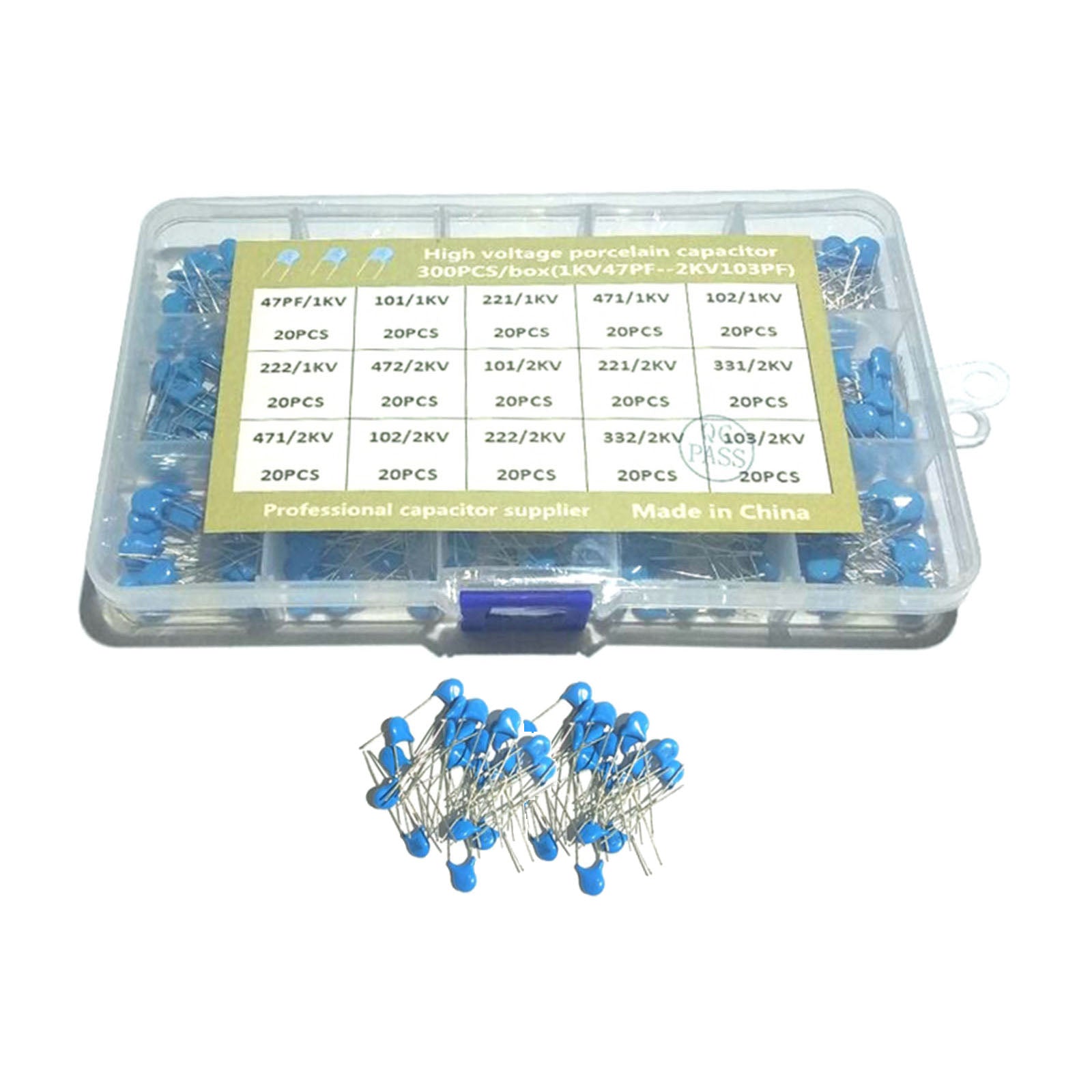 15 Values 300pcs Electrolytic Capacitor Assortment Box Kit 1KV47PF-2KV103PF