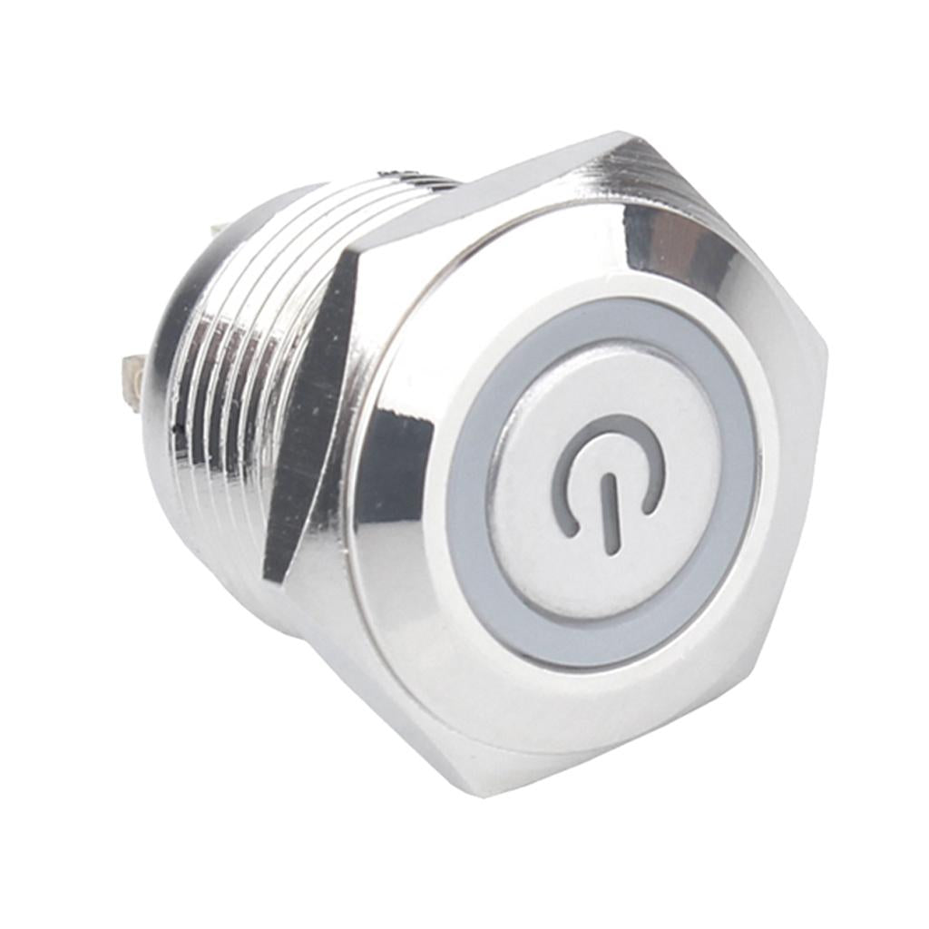 1 Piece 16mm12V Reset Ring Stainless Steel LED Light Flat Head Button Symbol Switch