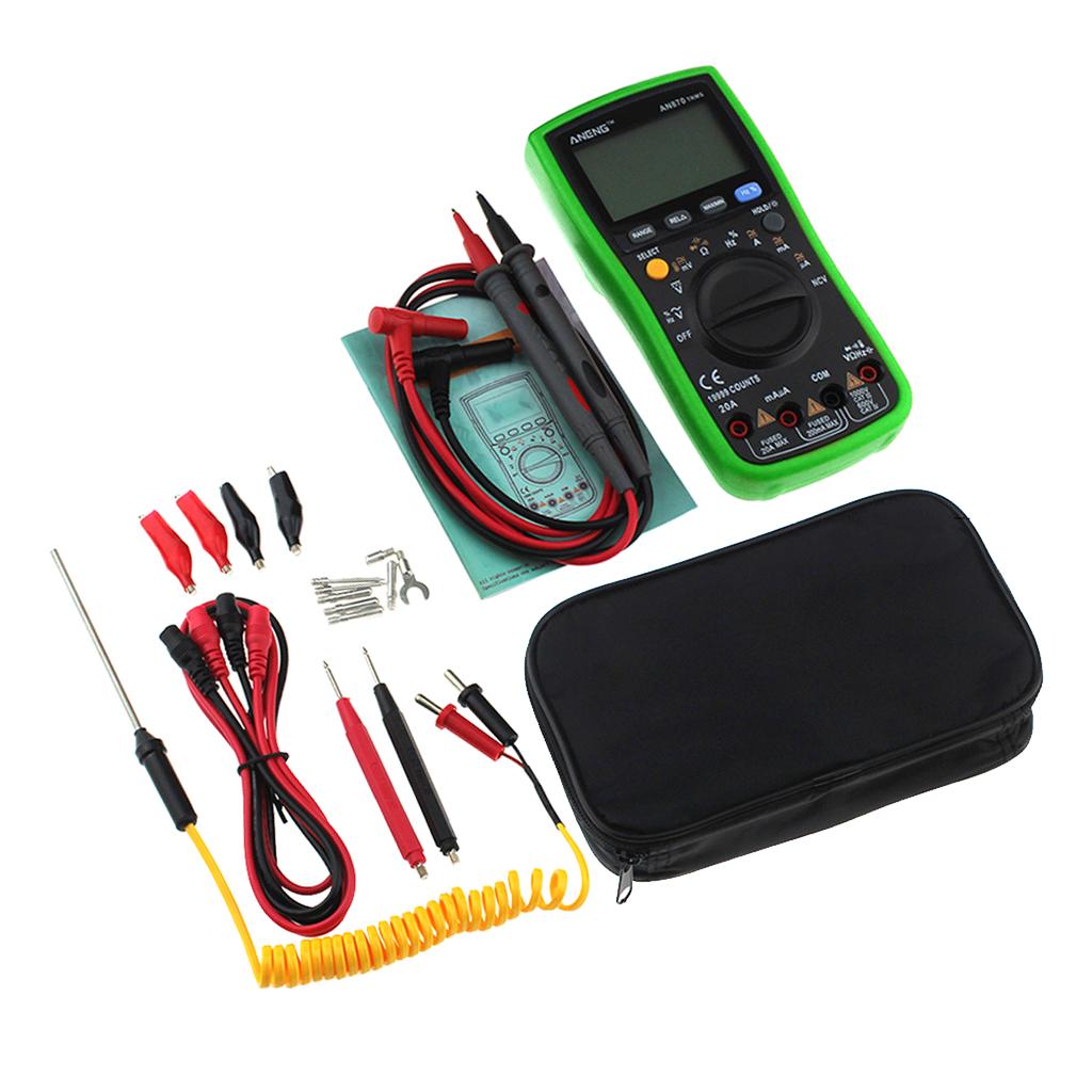 ANENG AN870 is a 19999 count auto-range digital multimeter, with test leads probes.