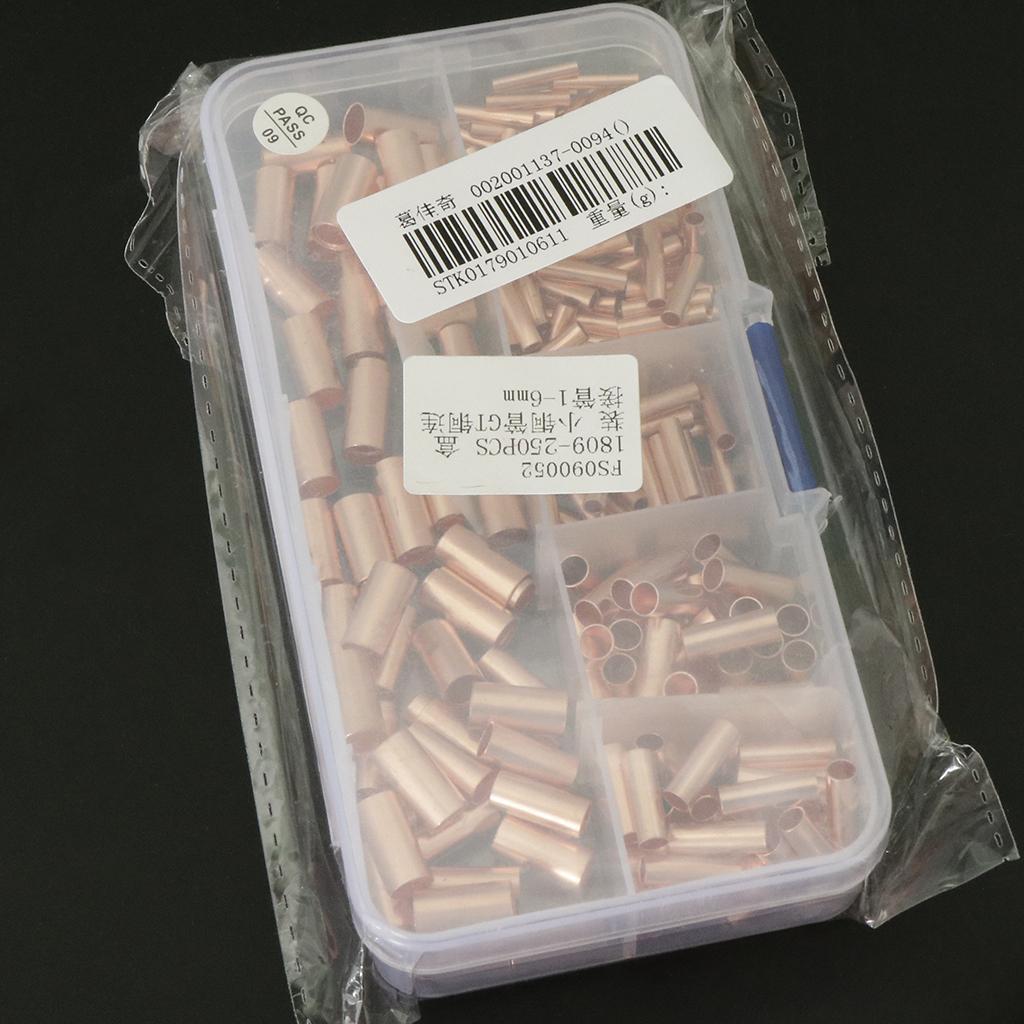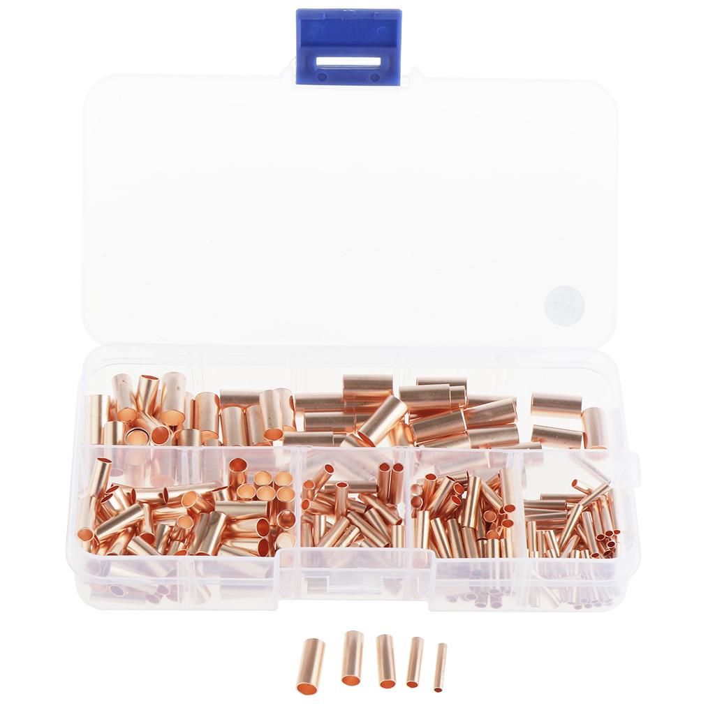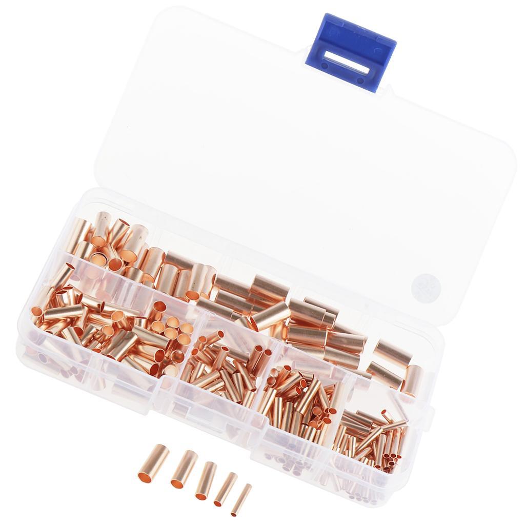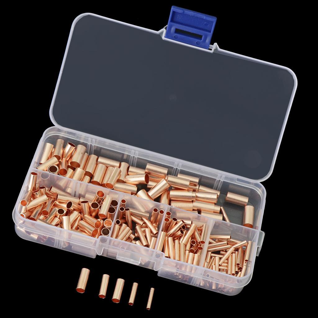 250pcs Non-Insulated Butt Connectors,Uninsulated Electrical Wire Ferrule Cable Crimp Terminal Kit with Storage Case for DIY