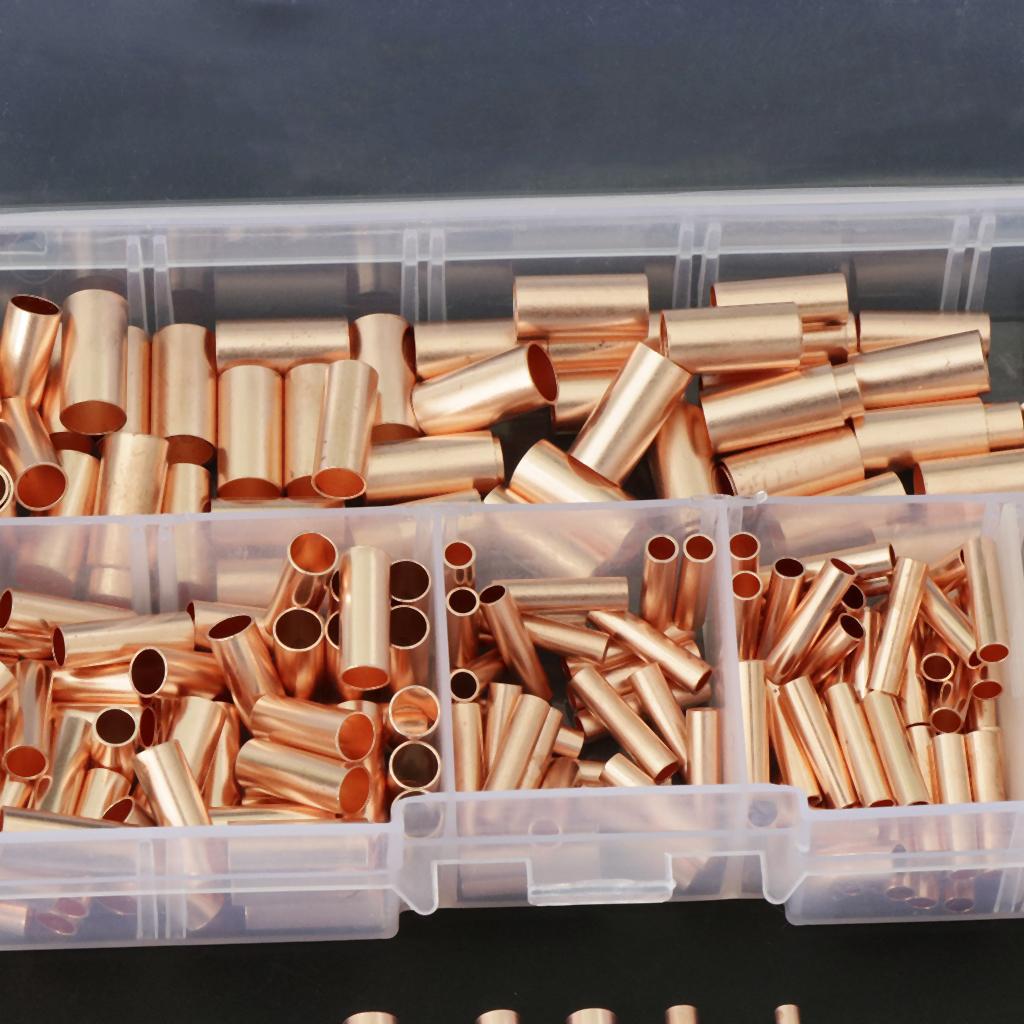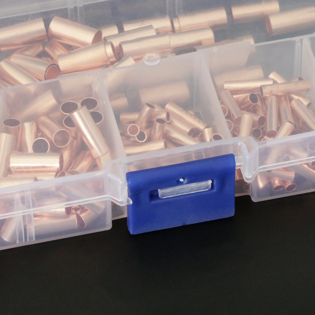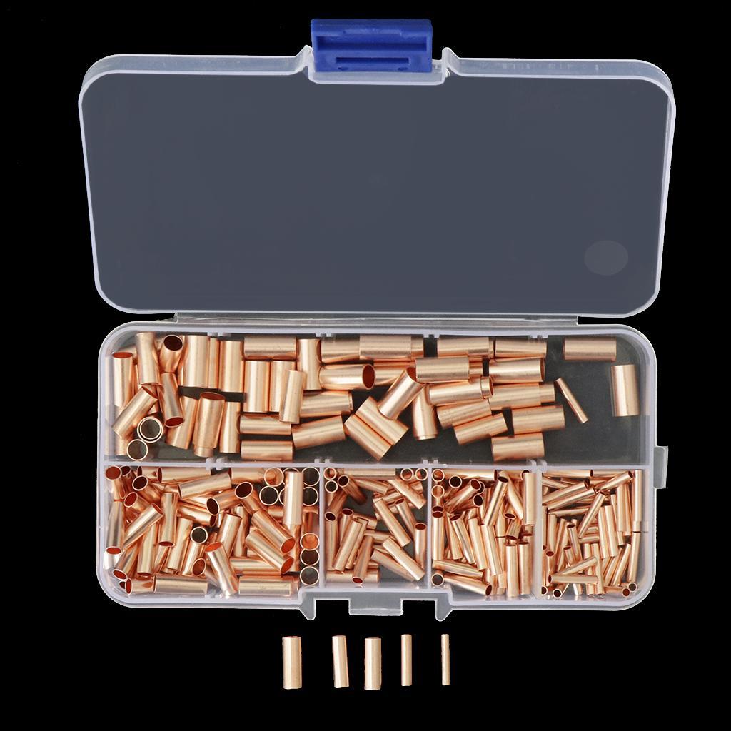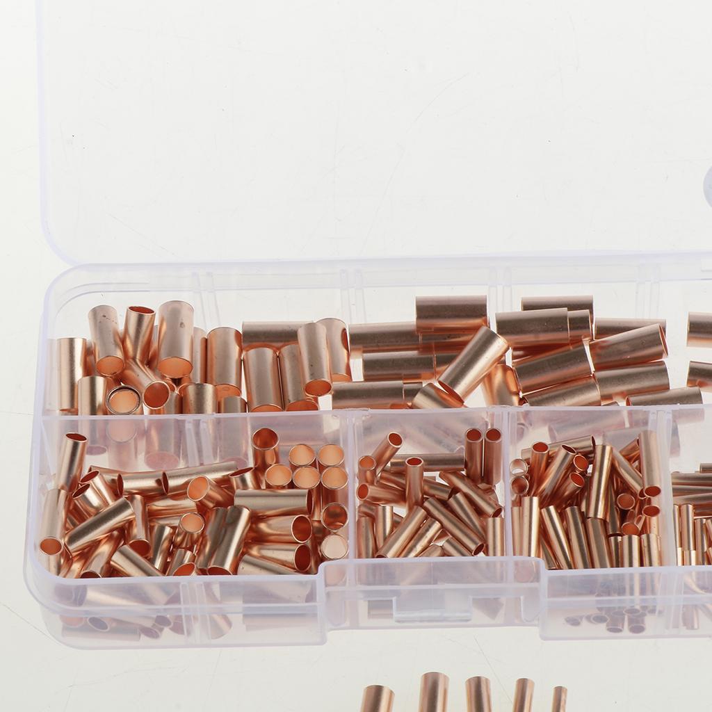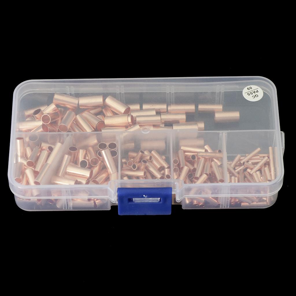 250pcs Non-Insulated Butt Connectors,Uninsulated Electrical Wire Ferrule Cable Crimp Terminal Kit with Storage Case for DIY