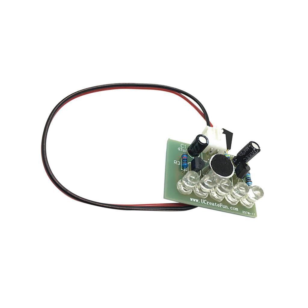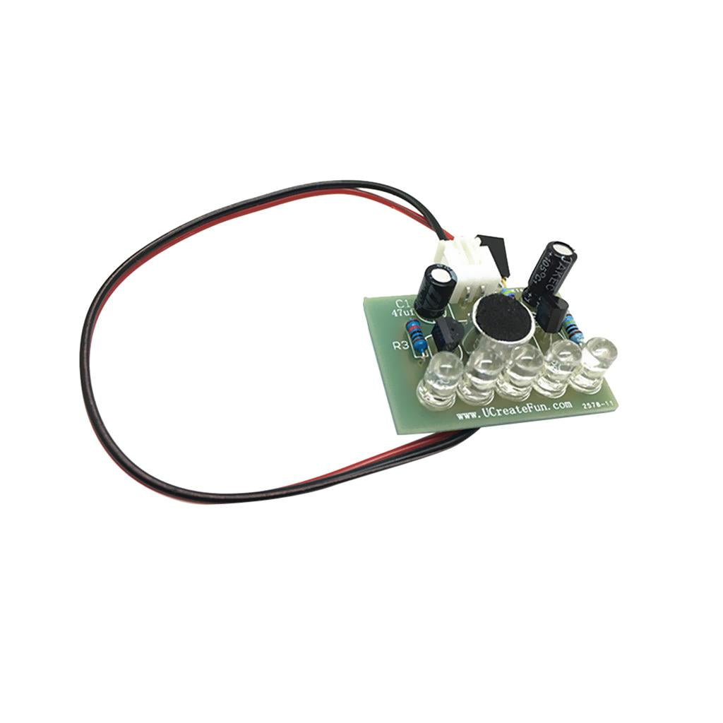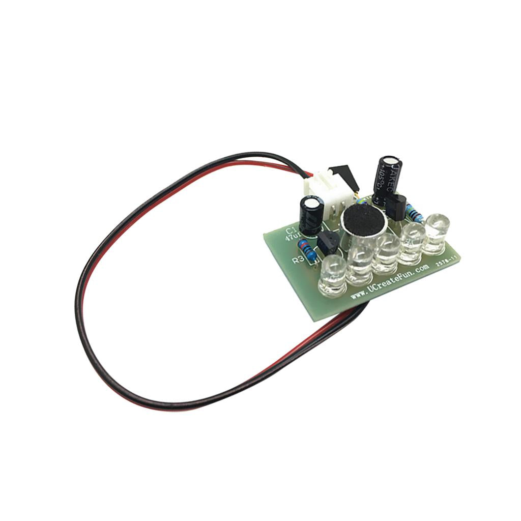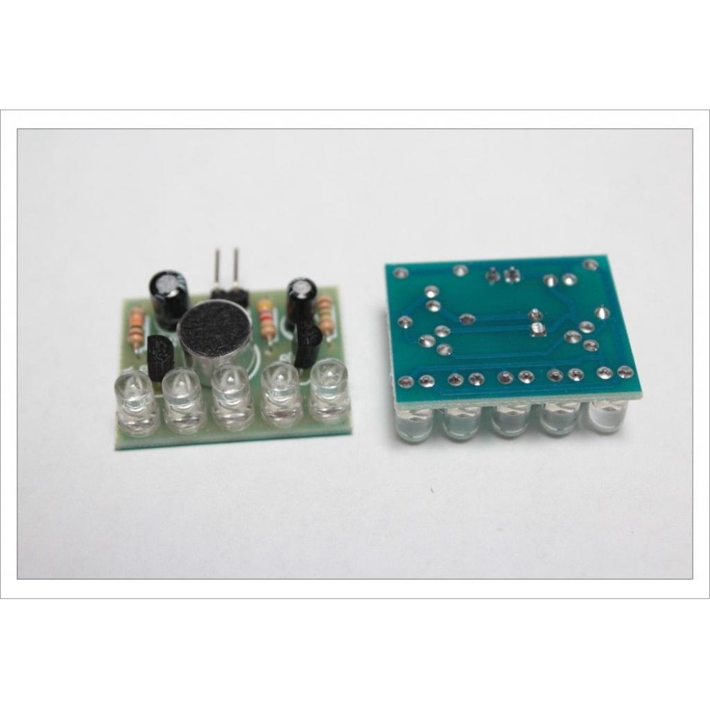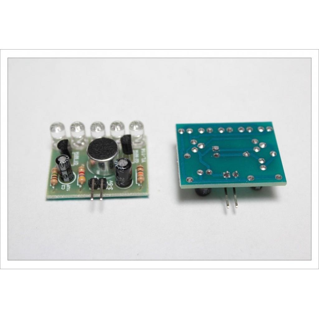 Circuit function: After the success of this package 5 LED will be with the music or other sound rhythm flashing up, can be placed in the vicinity of the sound, so that the light for the music dancers!