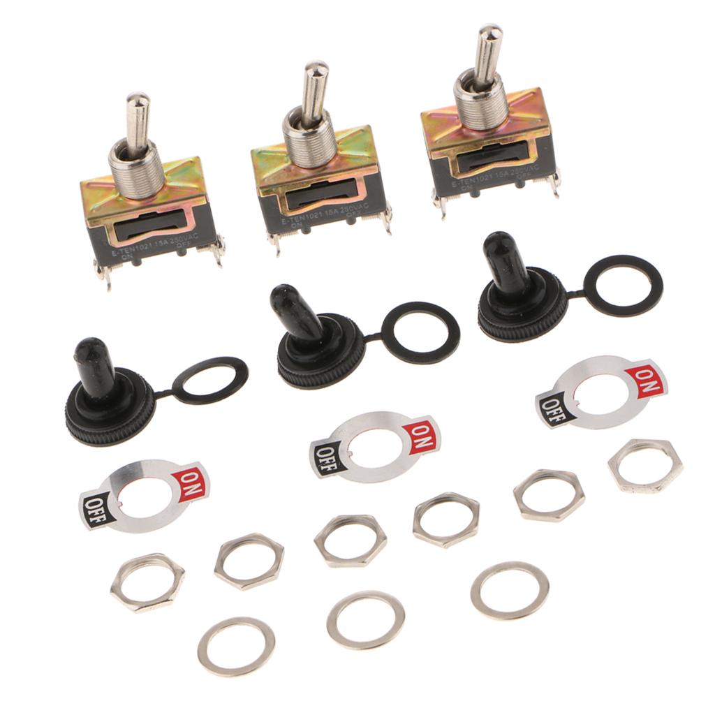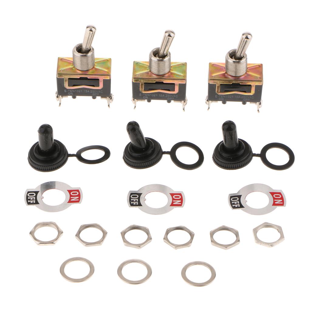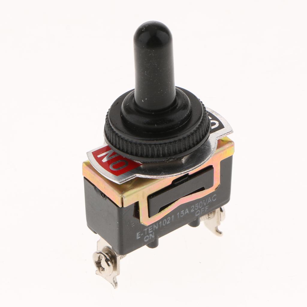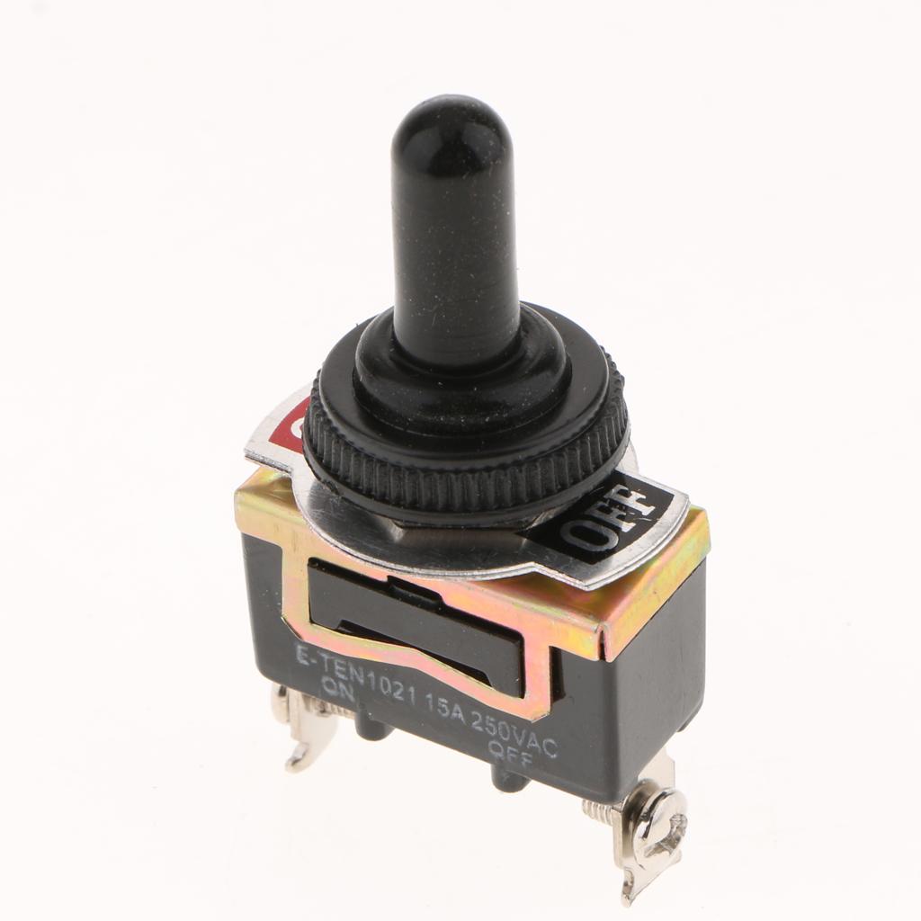 E-TEN1021 Durable Heavy Duty Toggle Switch 250V AC 15A SPST 2 Terminal Pin ON/OFF Single Pole with Waterproof Cap