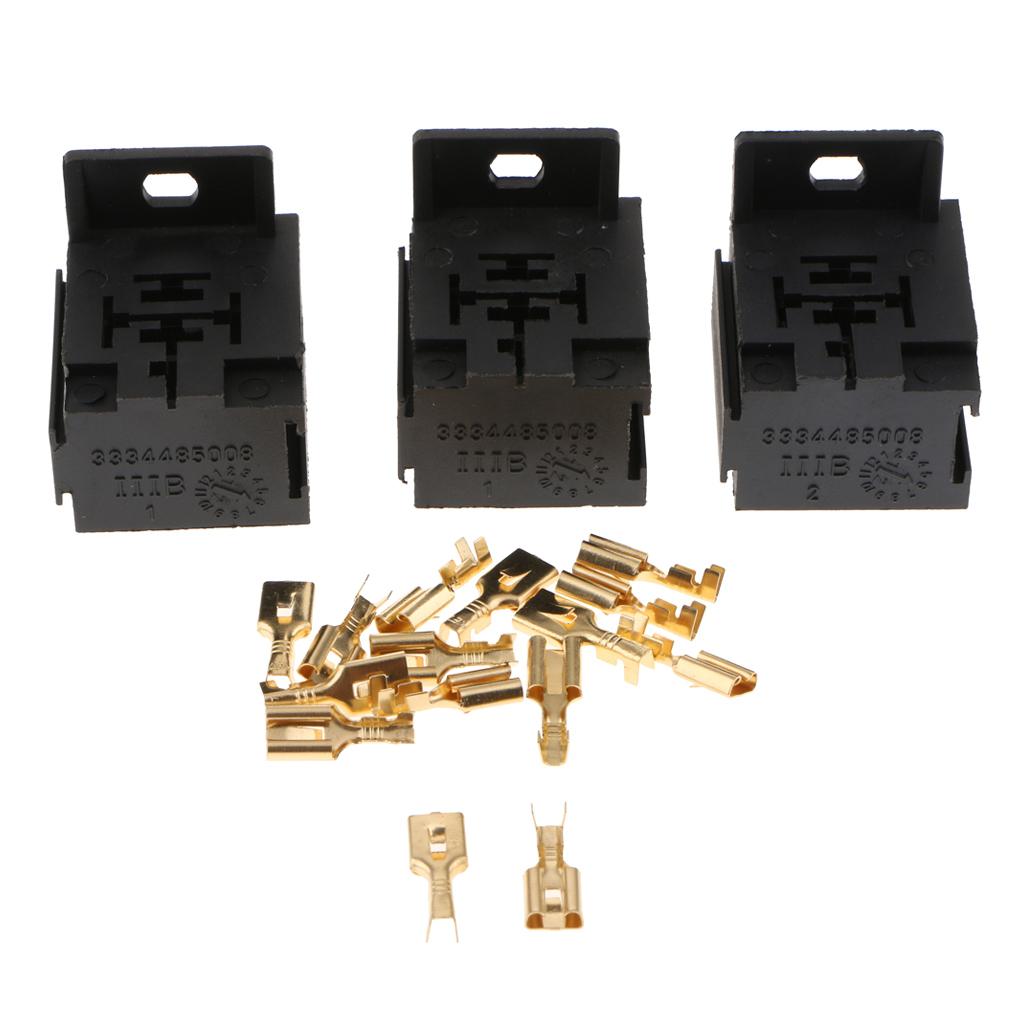 3pcs Automotive Auto Relay Double Socket 40A 5PIN with 15pcs Terminals