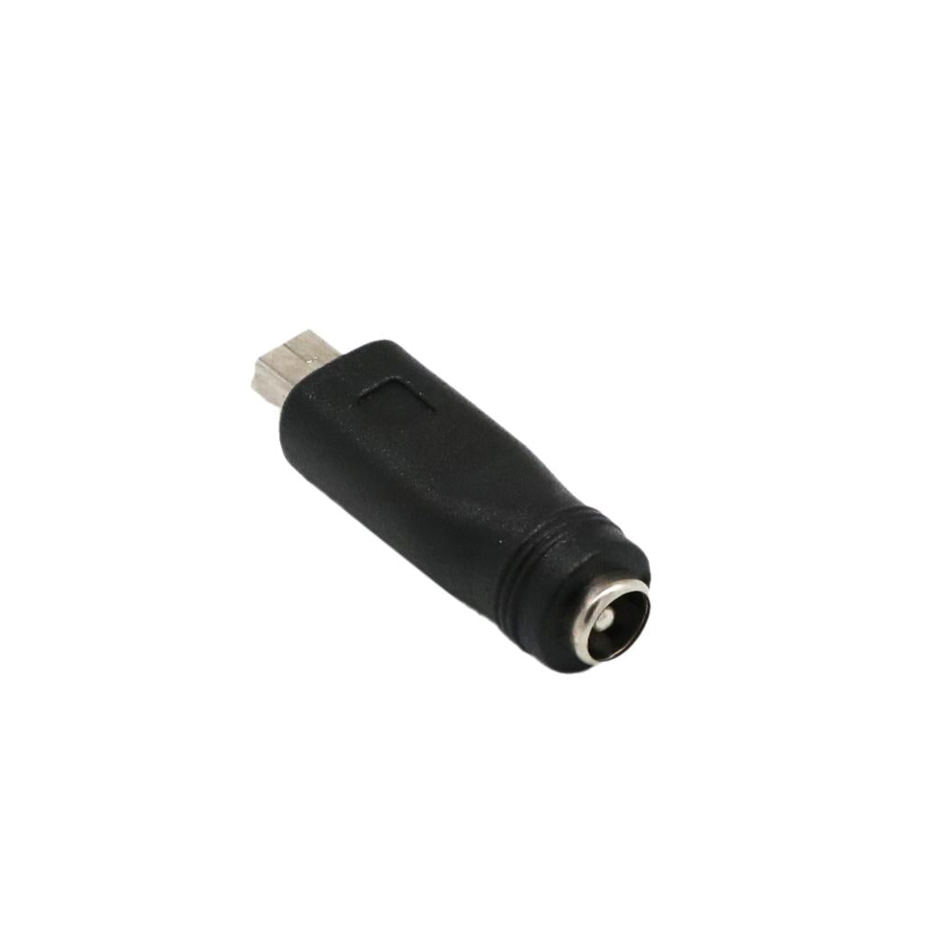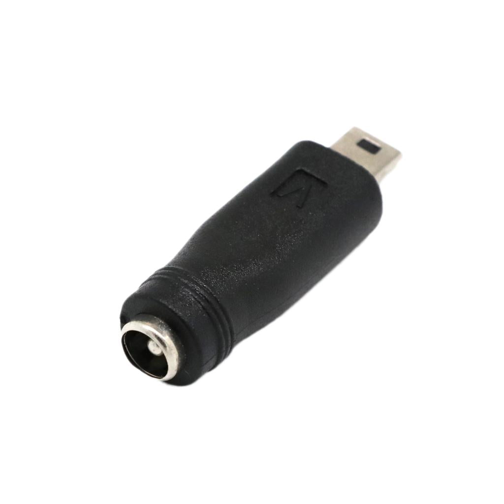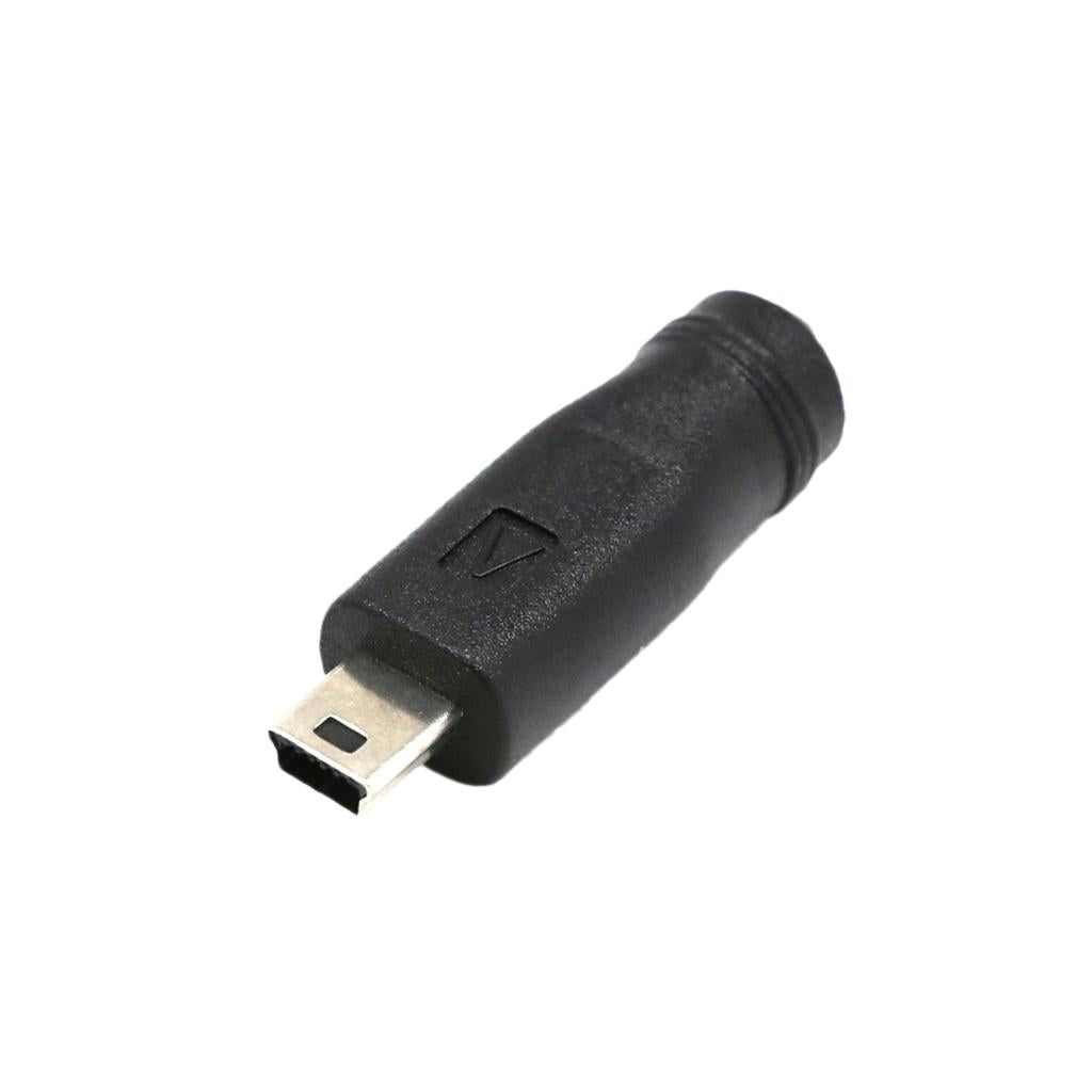 This adapter is DC 5.5mm x 2.1mm Female to Mini USB male port type.